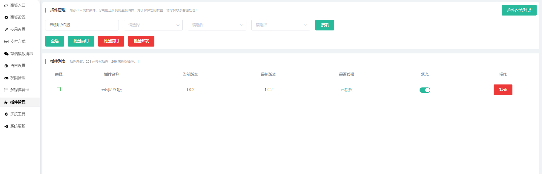总后台 — 系统 — 插件管理,启用“云喇叭YQ版”
