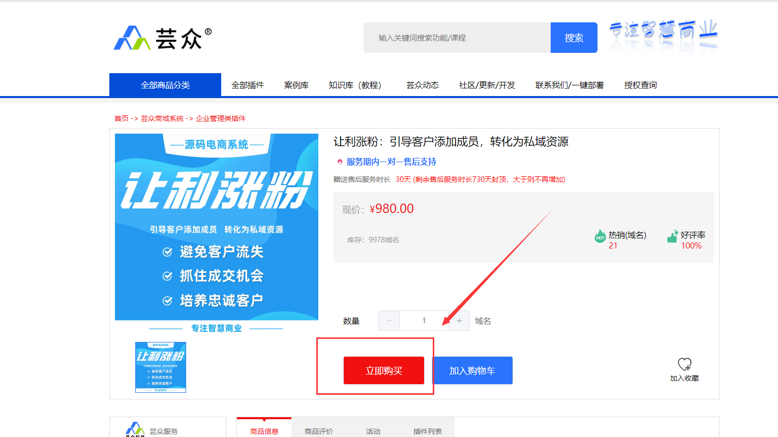 如您是标准版/高级版及以上版本的用户,部分插件享受免费购买,下单后自动改价