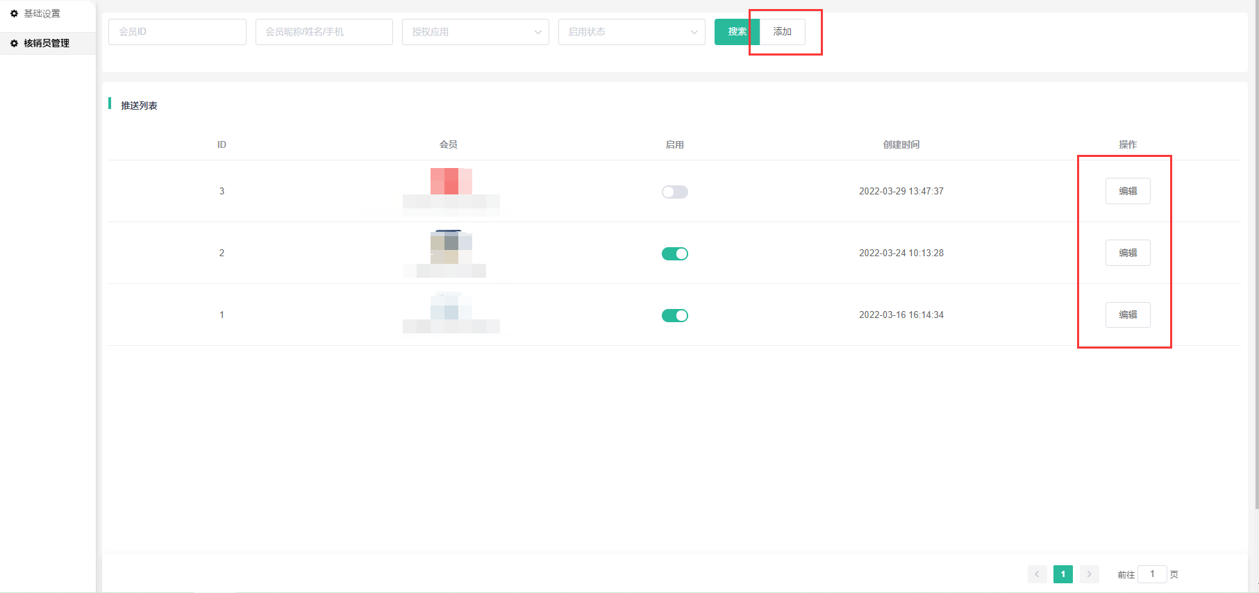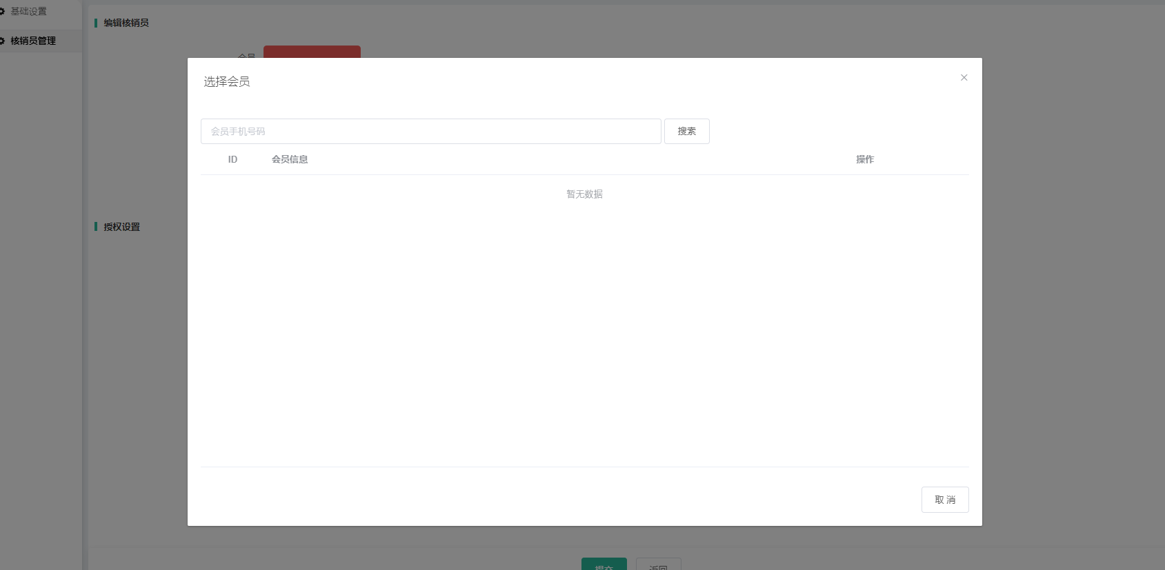 注意:一旦添加为核销员,不支持被删除,可以禁用,也可以重新选择核销员会员.