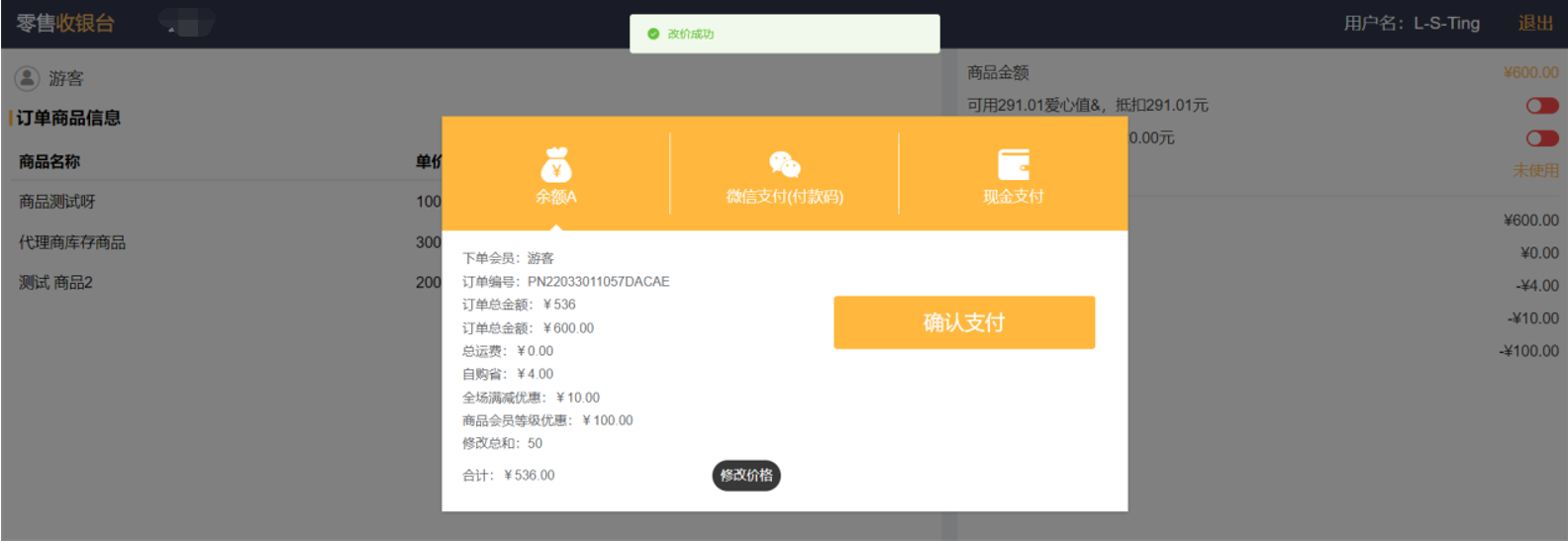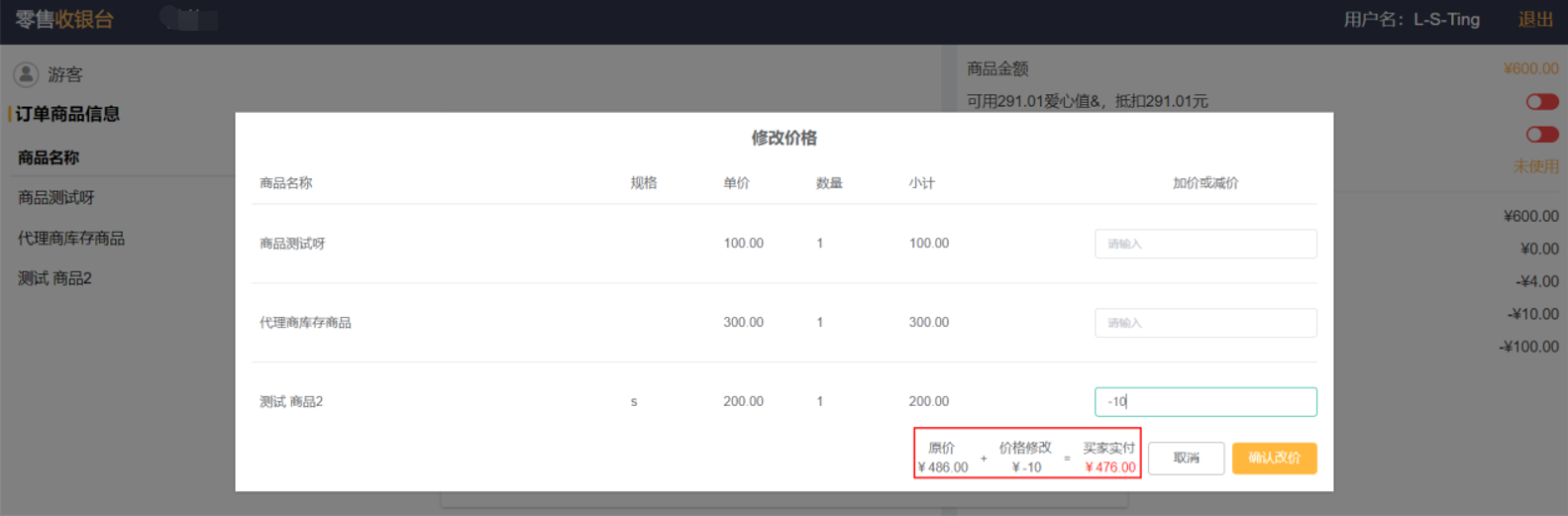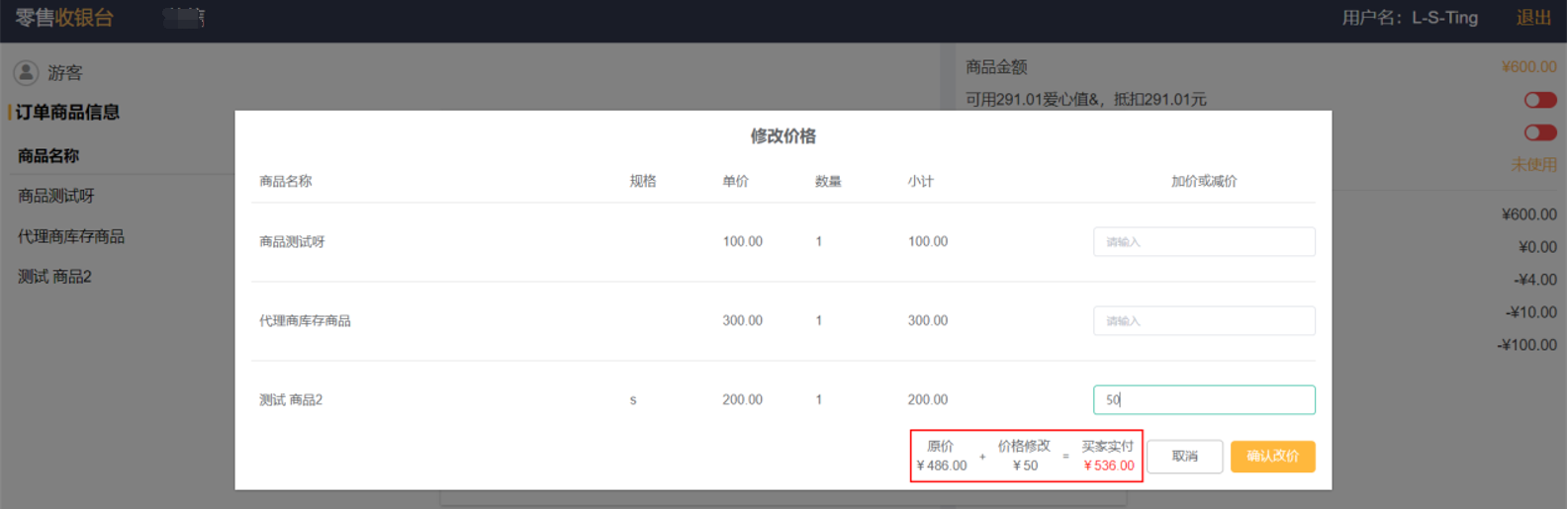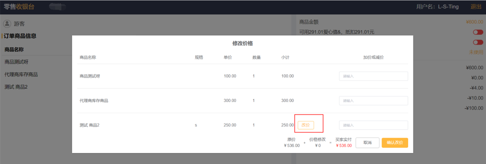确认改价,弹出改价成功提示,再次进入改价页,已改过价的商品有改价标识: