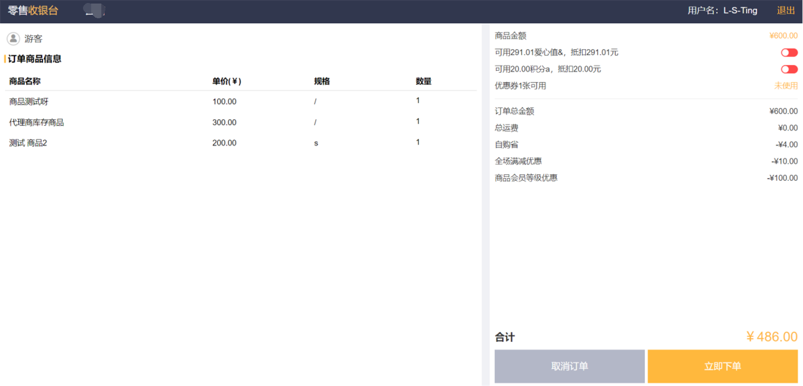 如果以游客身份下单,下单将使用绑定会员的优惠券、积分、消费积分、余额等,绑定的会员如下: