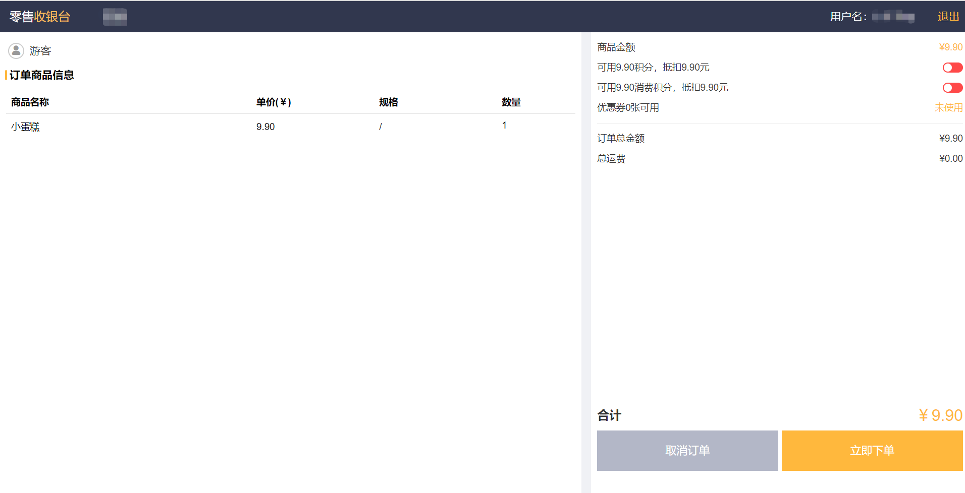 概述:为商家提供快速开单和结算的能力,同时结合优惠券核销,积分抵扣等机制,还能带来增购、复购的效果。目前仅支持平台绑定的企业。商城核销员和pos收银搭配一起使用。