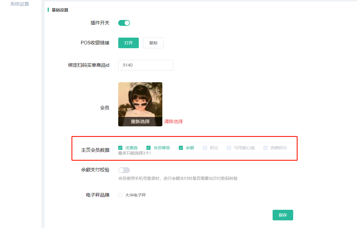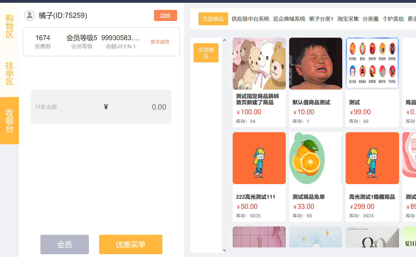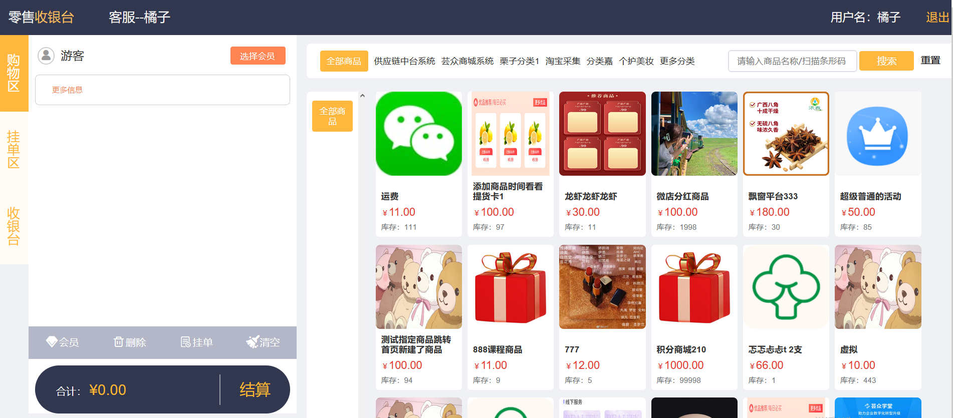 注:扫码枪的usb插电脑,可以使用扫码枪。登录后pos收银左上角会员信息没做头像,不会显示会员头像。
