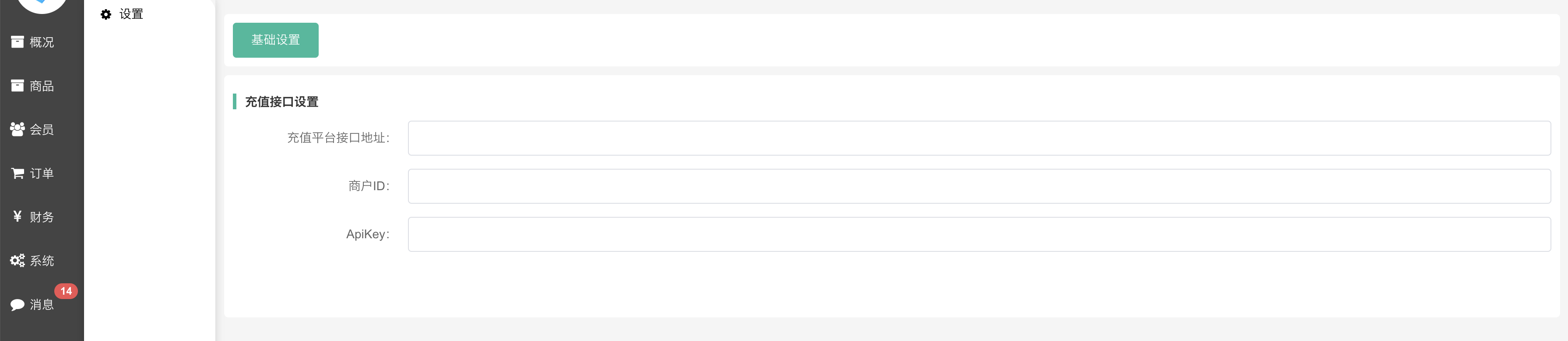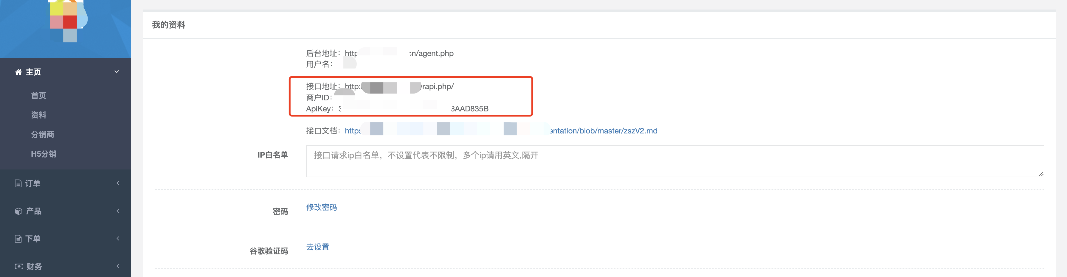 在第三方平台获取接口地址、商户ID、apikey信息填入上方设置中。