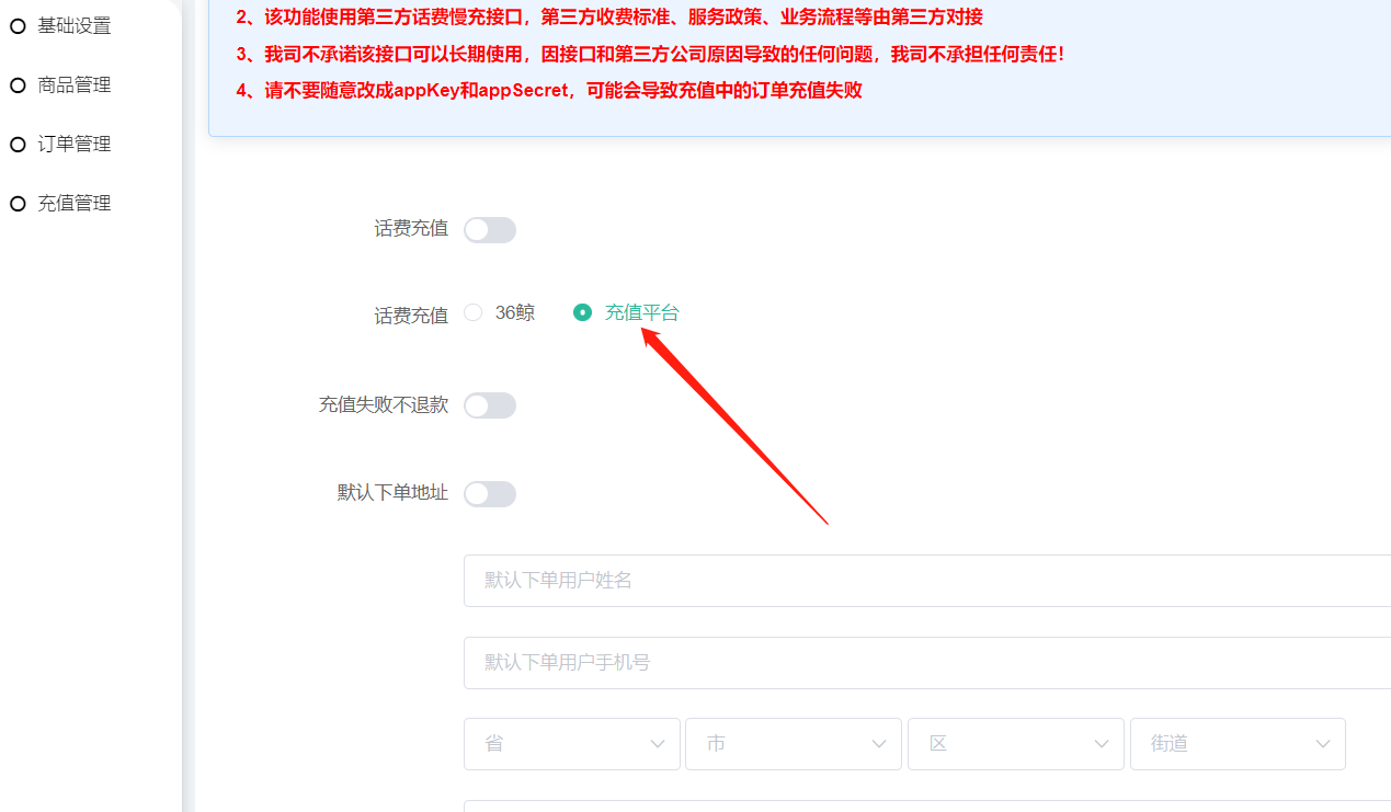 充值平台对接第三方云平台,需要开通第三方接口权限后使用,详询客服!