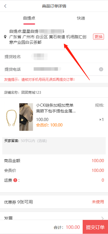 装修DIY插件增加社区团购组件,选择自提点,在商城购物下单时默认此自提点。