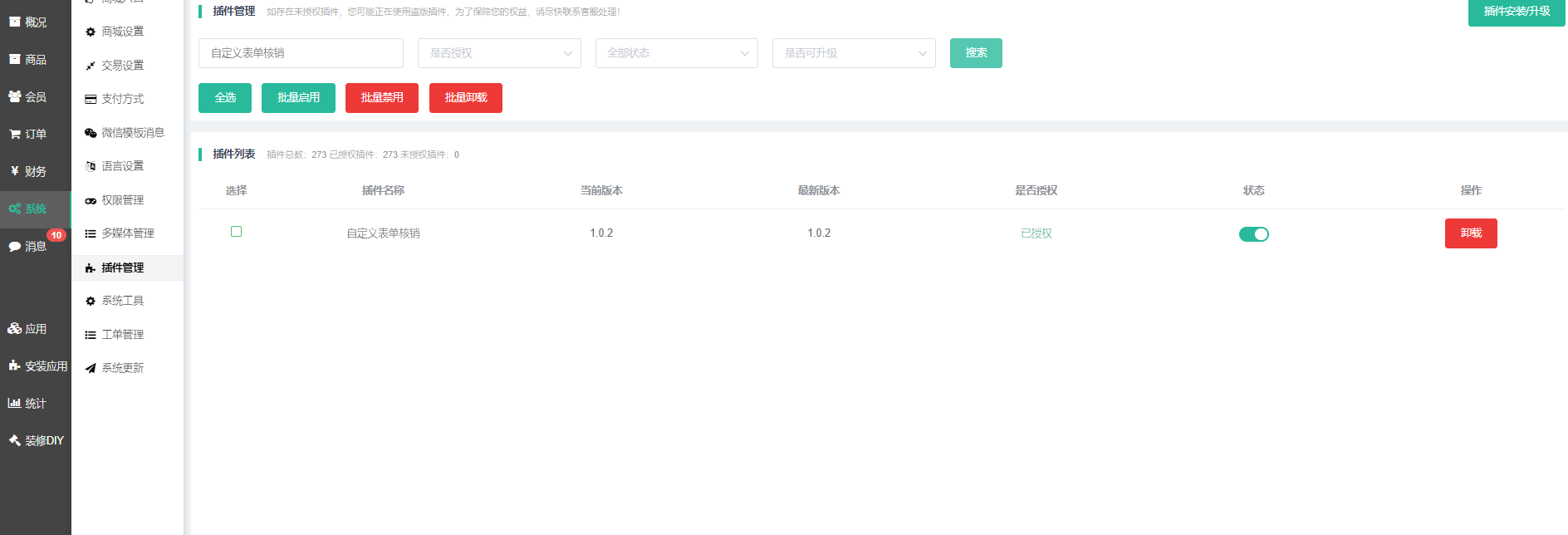 启用路径:总后台 — 系统 — 插件管理 –启用“自定义表单核销”插件