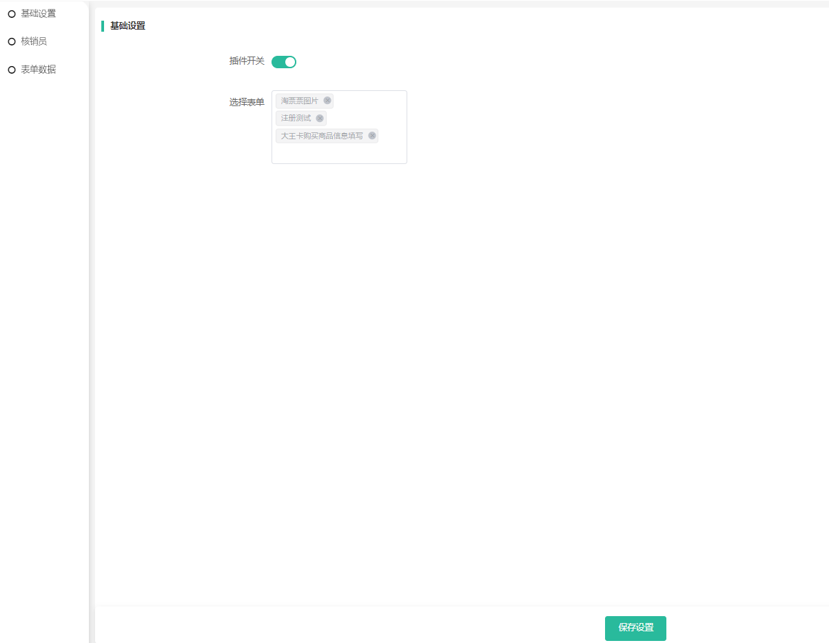 选择表单:输入框输入表单名称,可搜索选择表单(搭配自定义表单使用,自定义表单插件先创建表单,这里才能选择。)