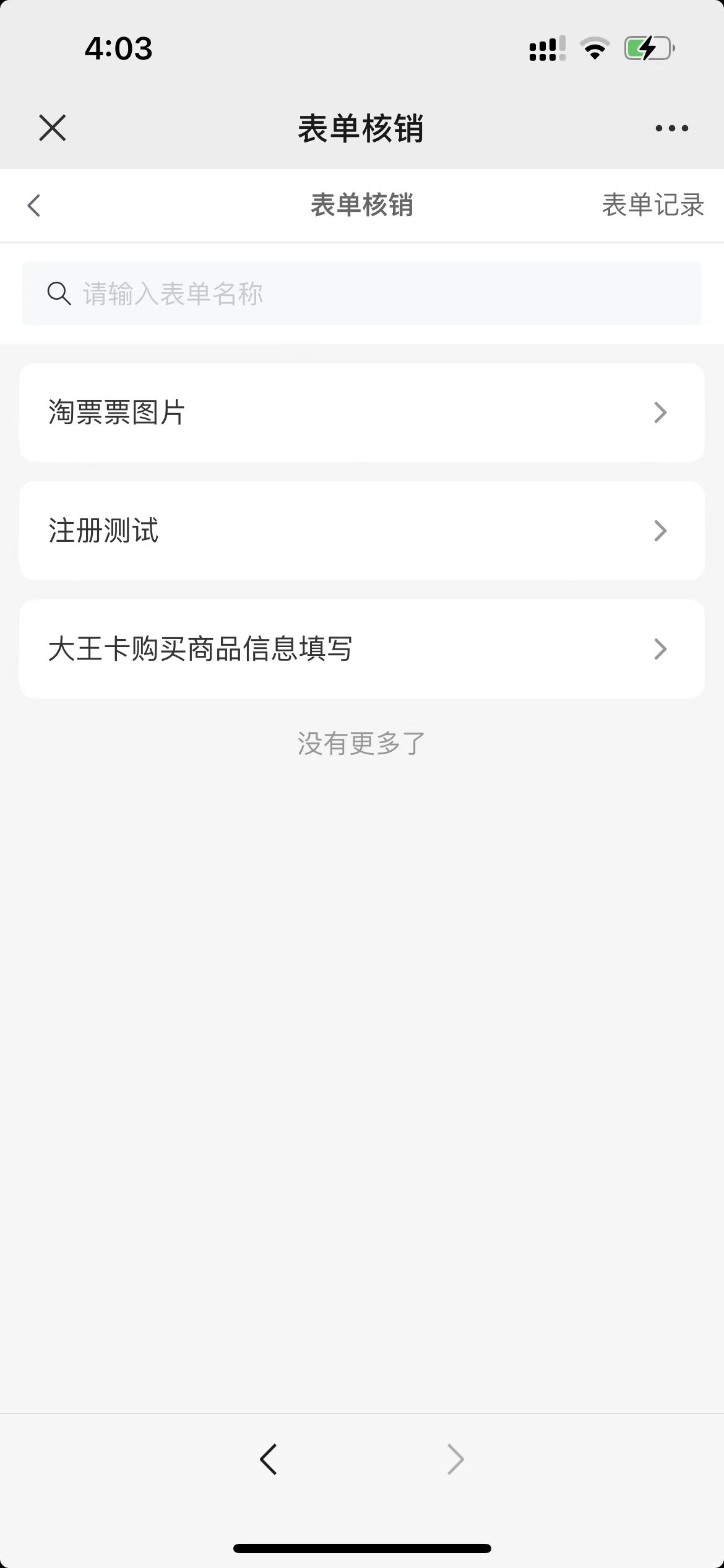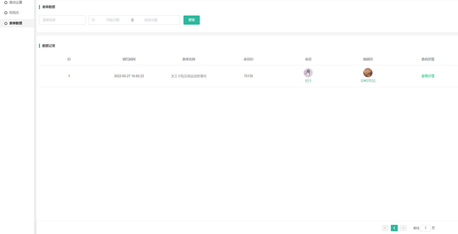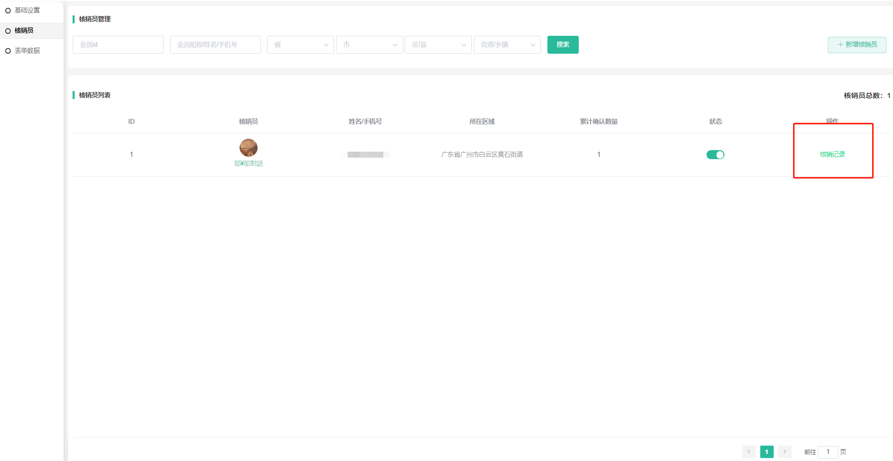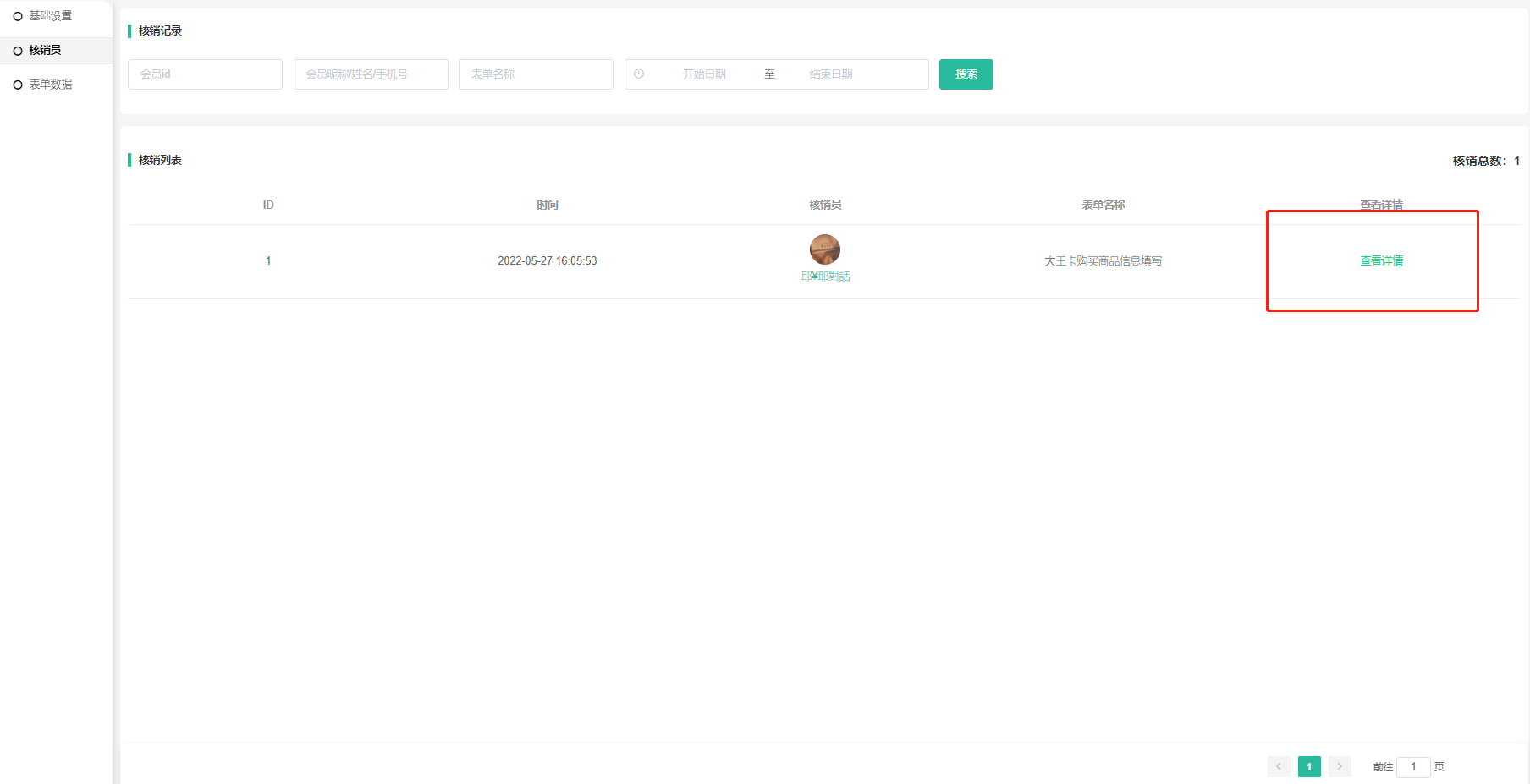 查看核销记录:可查看核销员的核销记录、核销表单内容
