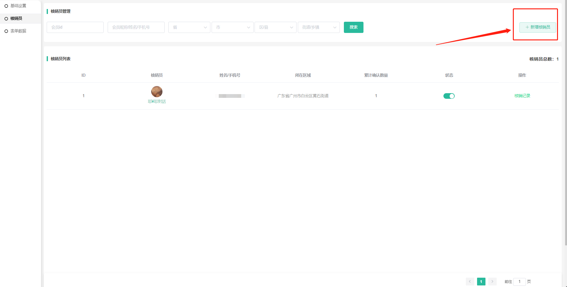 新增核销员,一旦成为核销员,不可修改和删除身份,可禁用该核销员身份。