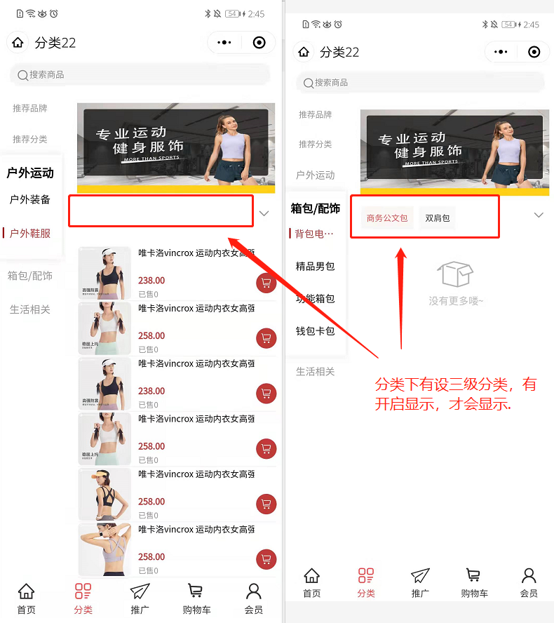 通过在分类项的顶部展示图片,将流量引到相关商品,完成订单转化达成营销目的。