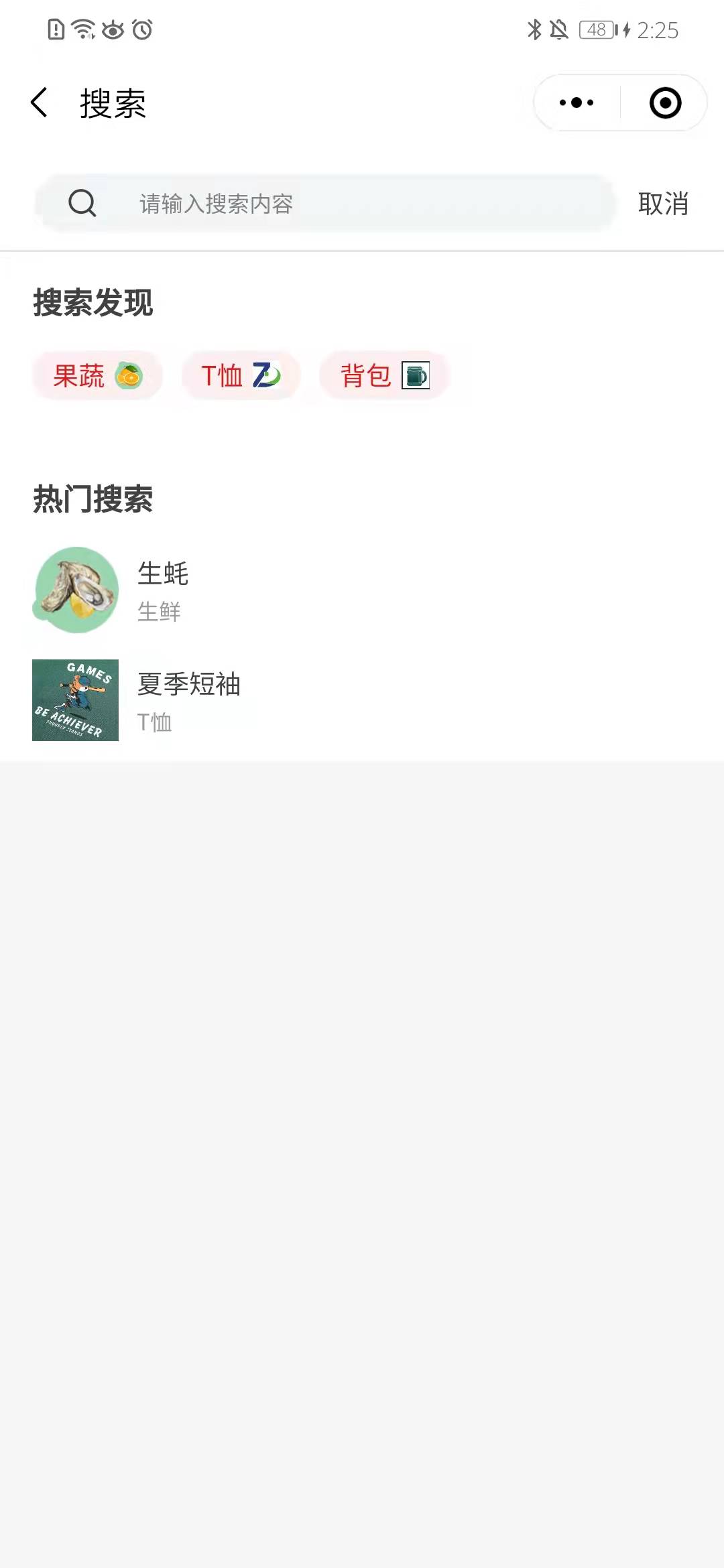 (一)页面设置,商品搜索页面增加搜索发现和热门搜索功能