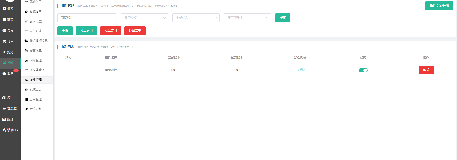启用路径:总后台 — 系统 — 插件管理 –启用“页面设计”插件