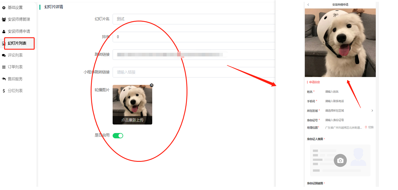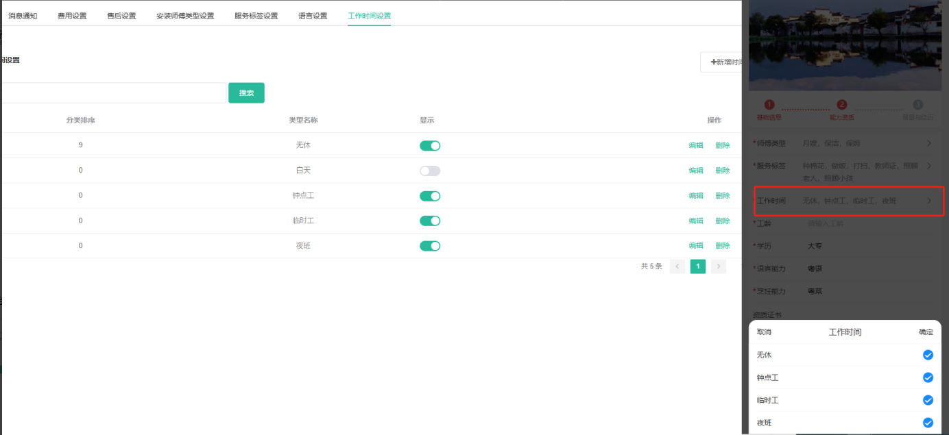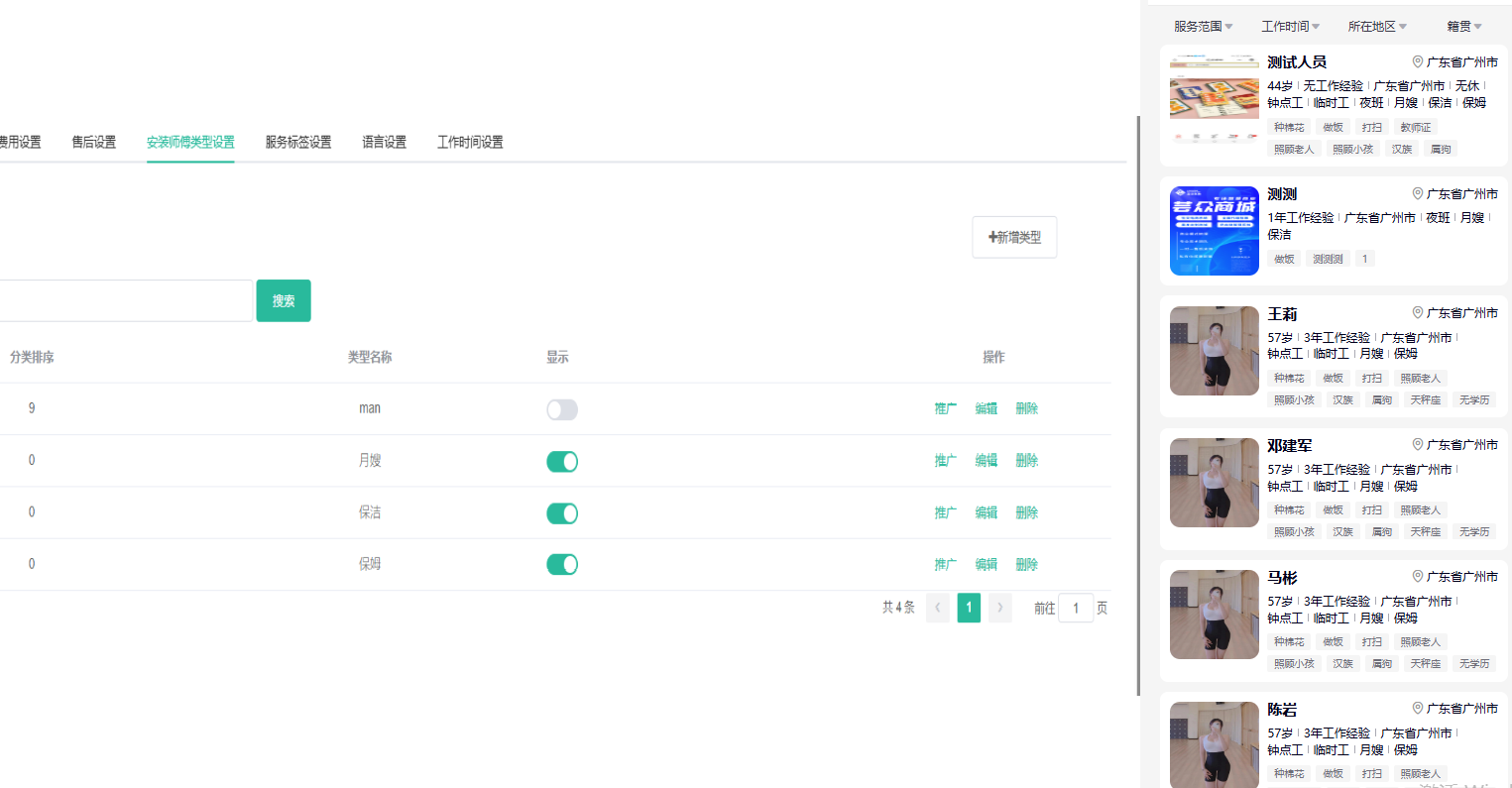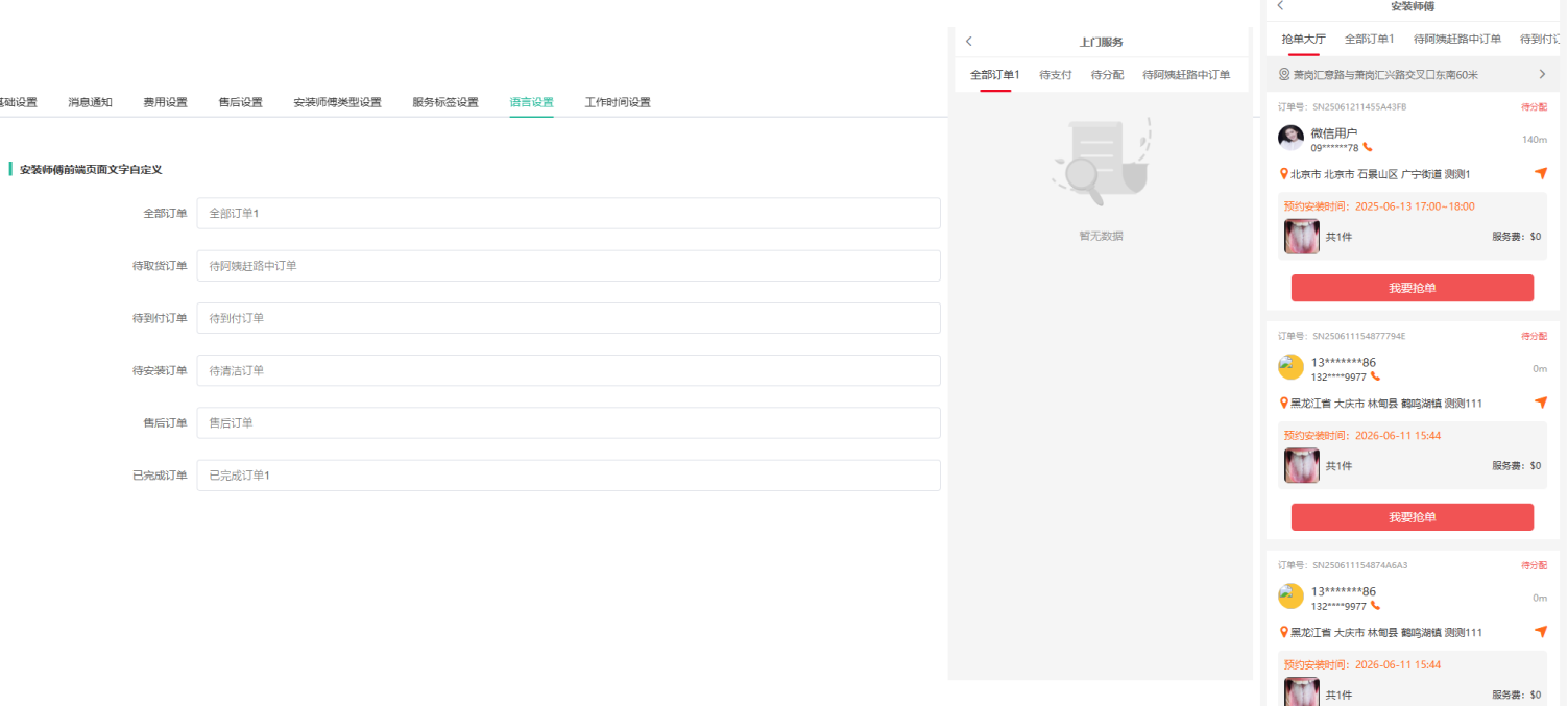 2)安装师傅/安装自定义名称:设置好后前端的安装师傅字样随自定义名称改变