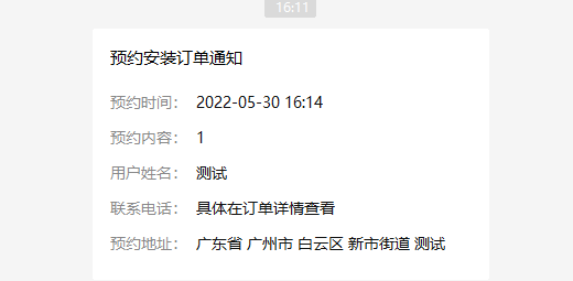 2)系统派单通知:通知被系统分配订单的安装师傅订单信息,用户下单后,后台可以分配订单到安装师傅,指派的安装师傅会收到派单通知