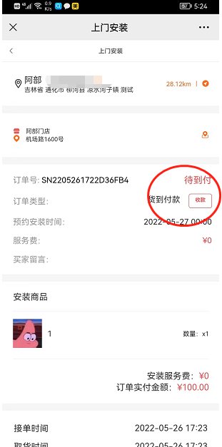 2) 待分配:用户下单后支付了或者选择了货到付款(安装服务的货到付款跟商城的货到付款不一样),此时等待安装师傅抢单或者商城后台分配订单