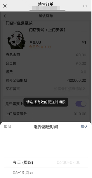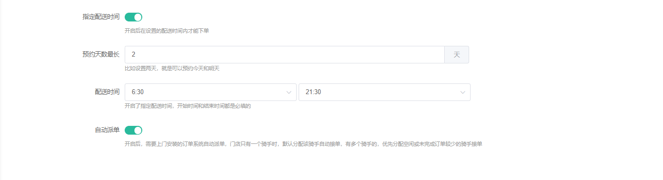 6)指定配送时间:开启后在设置的配送时间内才能下单