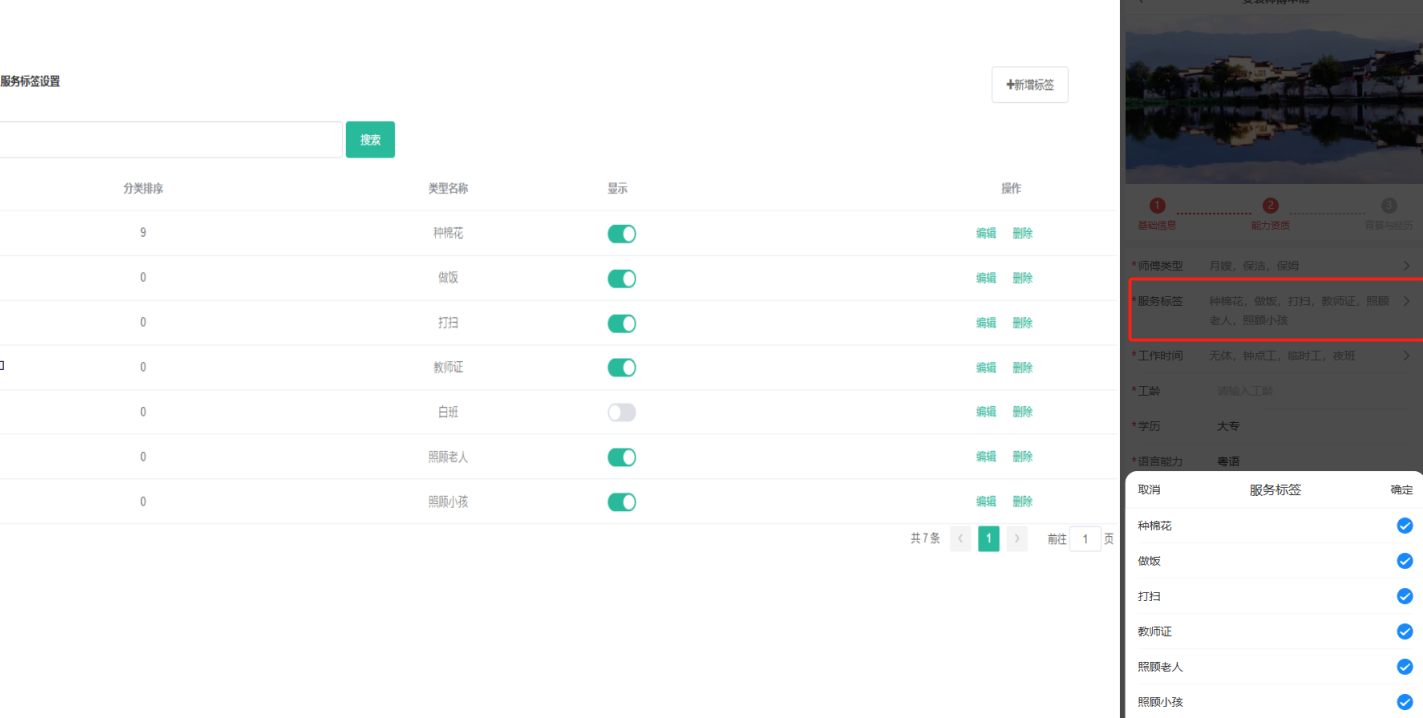 当开启分步骤设置,会员申请安装师傅时 需选择对应的服务标签