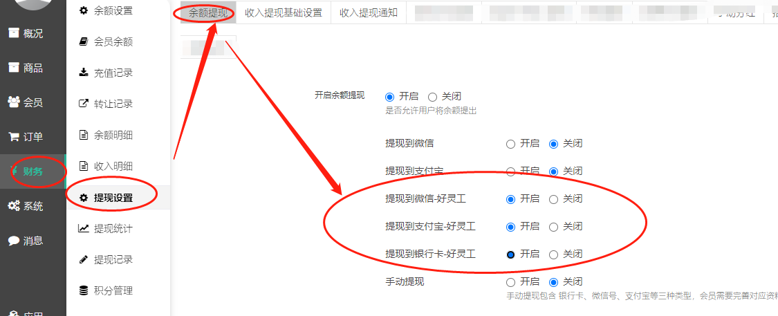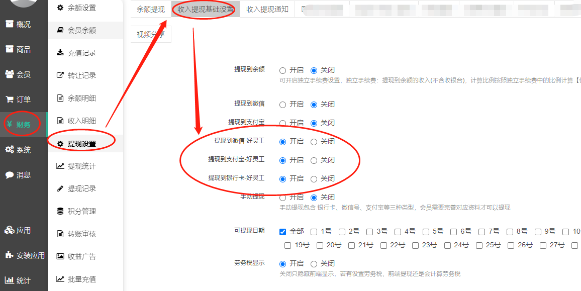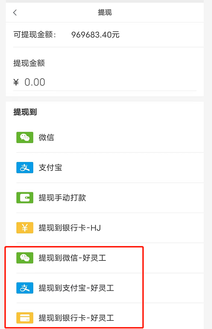 配置提现到支付宝,银行卡和微信钱包-公众号的信息,要通过第三方:好灵工进行获取填写到商城后台.