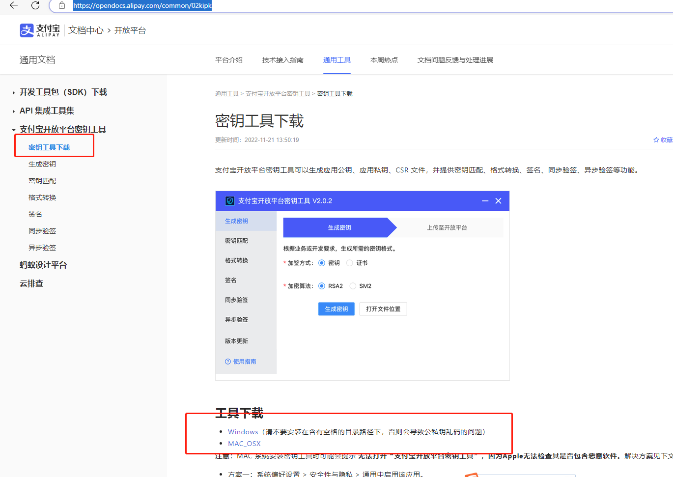 1、下载密钥工具(第三方提供的下载工具页面会存在变动,若点击打开下方页面链接看不到密钥工具下载的入口,请查看左侧菜单找一下喔)