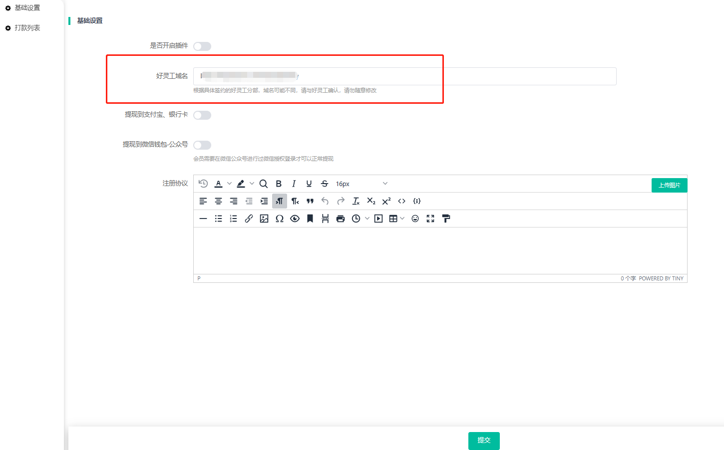 根据具体签约的好灵工,域名可能不同,请与好灵工确认,后台对应填写,请勿随意修改