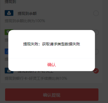 会员在个人中心–设置–填写好支付宝、微信、银行卡等信息,若不填写,提现到微信、支付宝、银行卡会提示:提现失败:获取请求类型数据失败。