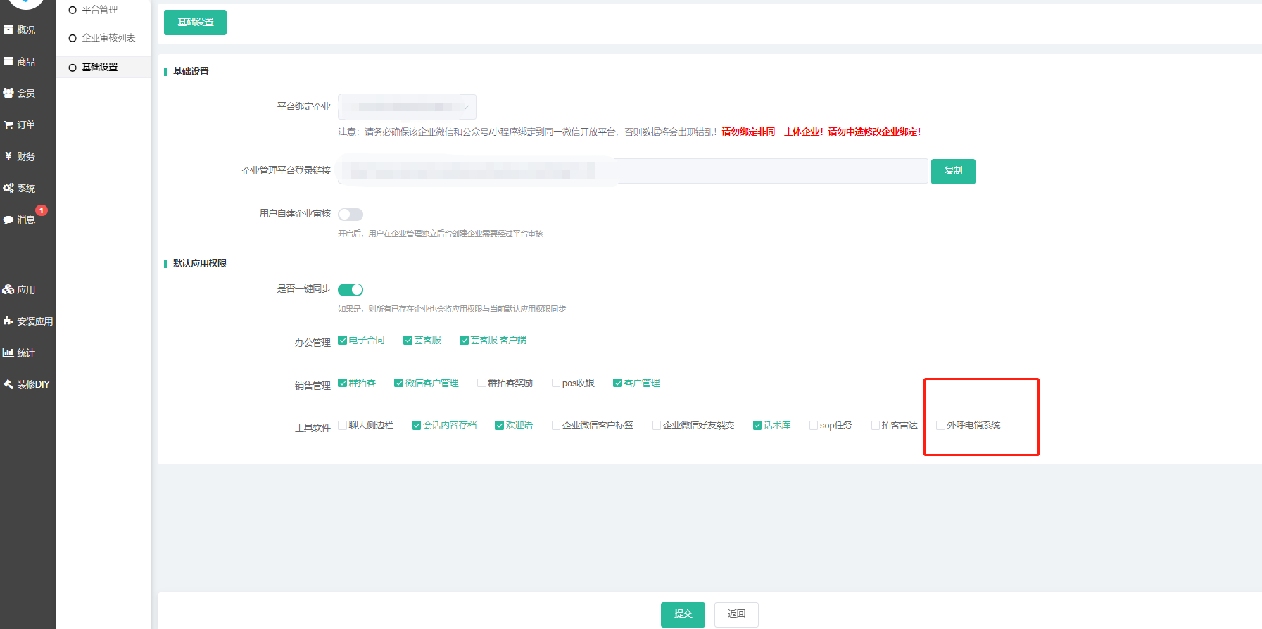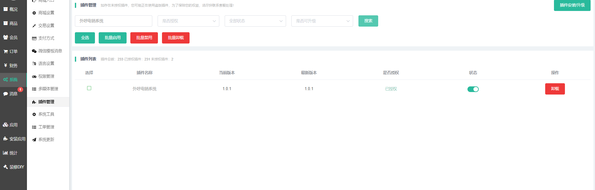 启用路径:总后台 — 系统 — 插件管理 –启用“外呼电销系统”插件