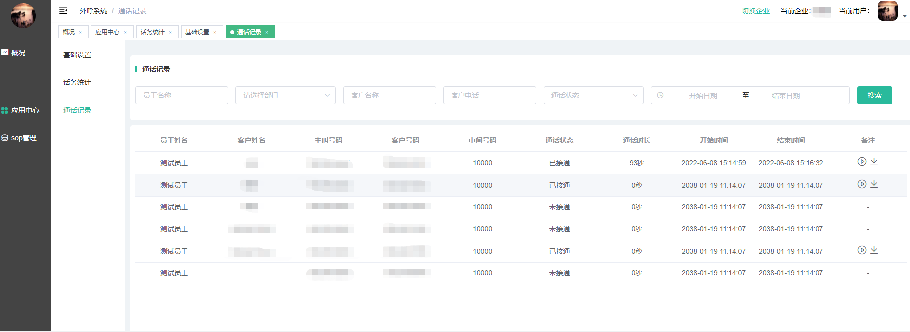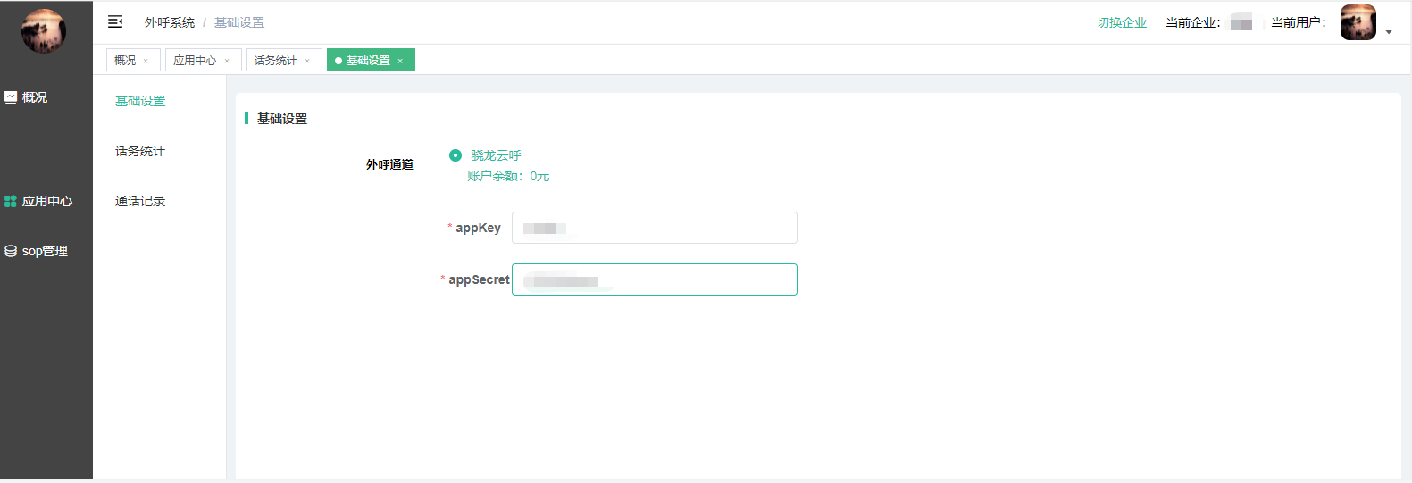 外呼系统对接的是骁龙云呼,需要填写骁龙云呼账号的appKey、appSecret