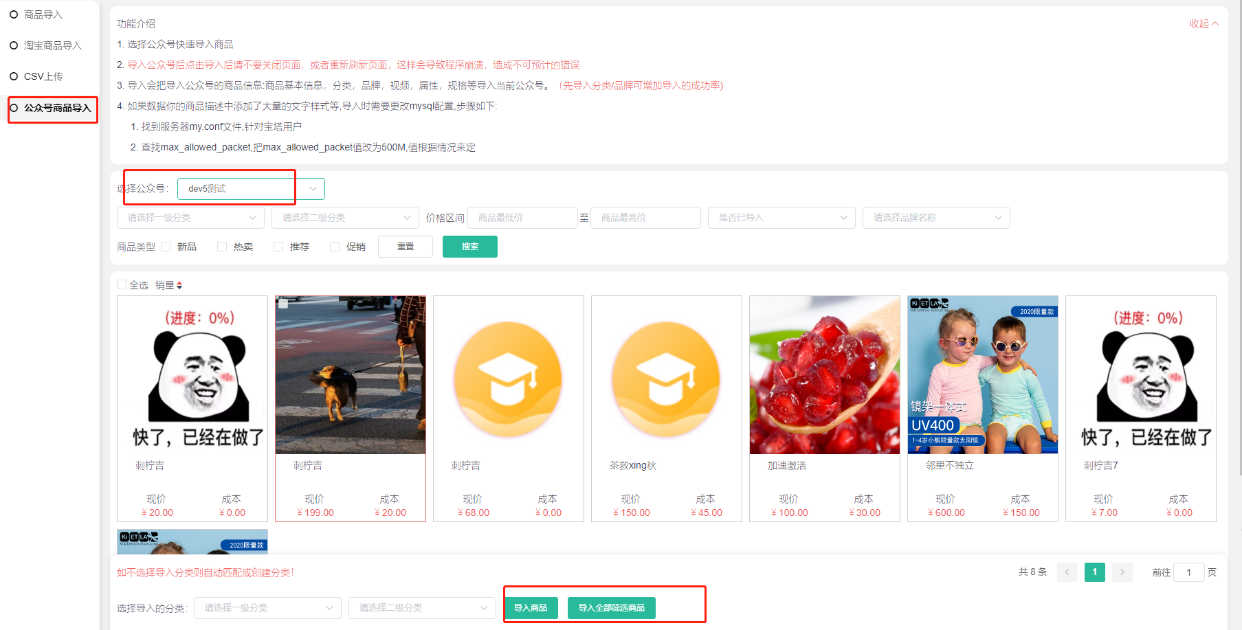 三、公众号商品导入
