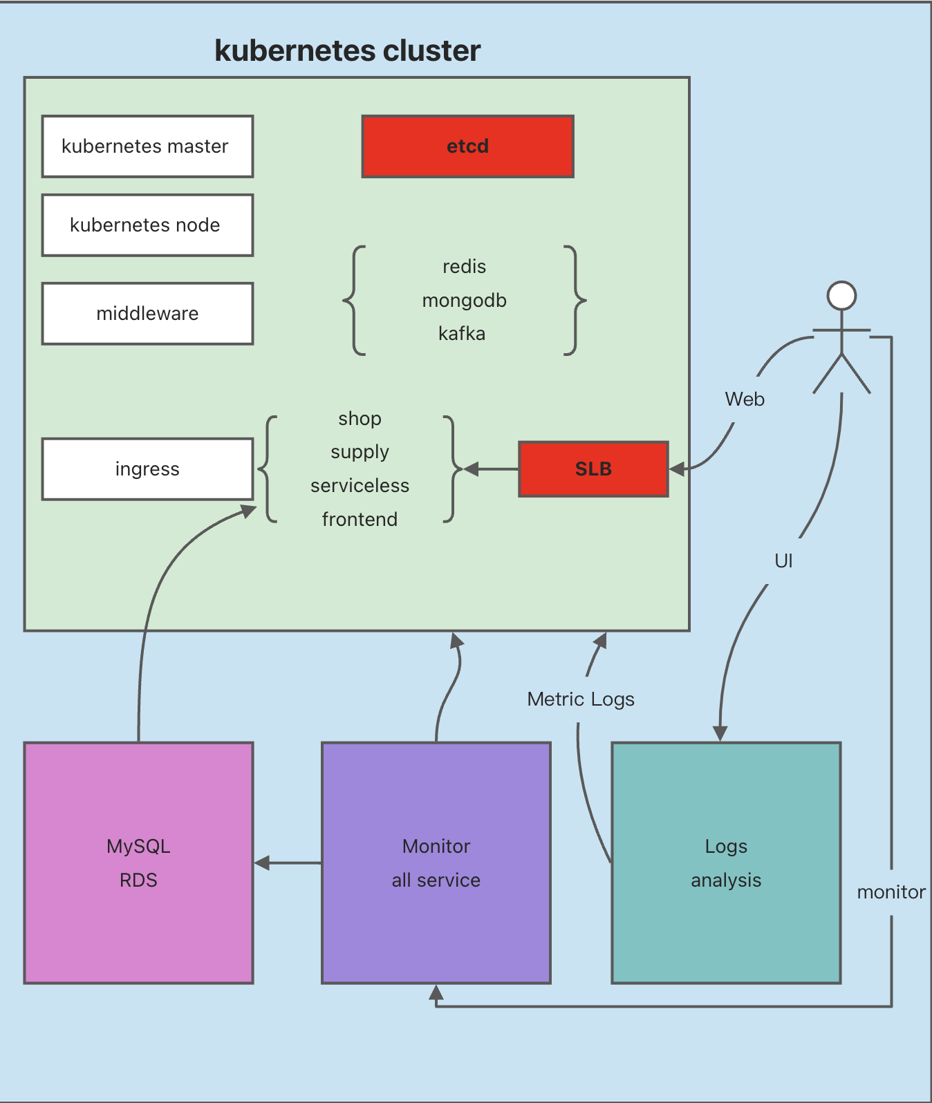 - 16核32G * 3 系统盘+数据盘IOPS需达到10000+的性能指标(少于200节点, 大于200节点需独立kubernetes集群存储),如营运商有etcd集群服务,可通过购买服务,实现kubernetes集群存储需求(不能购买单点,至少3节点 4核8G). kubernetes master可降低配置(8核16G) *3