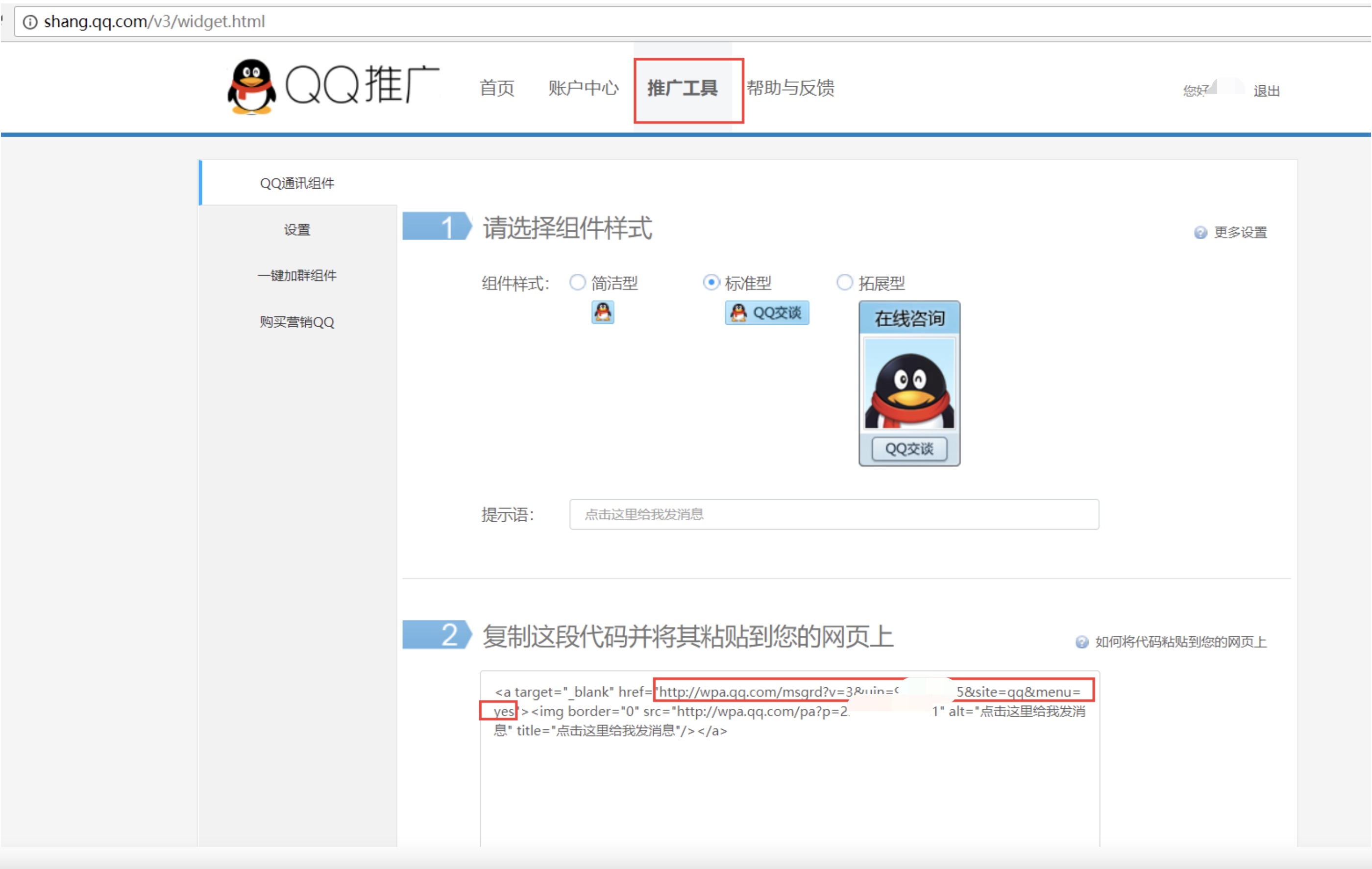 3、复制红框中的链接:http://wpa.qq.com/msgrd?v=3&uin=【QQ号】&site=qq&menu=yes
