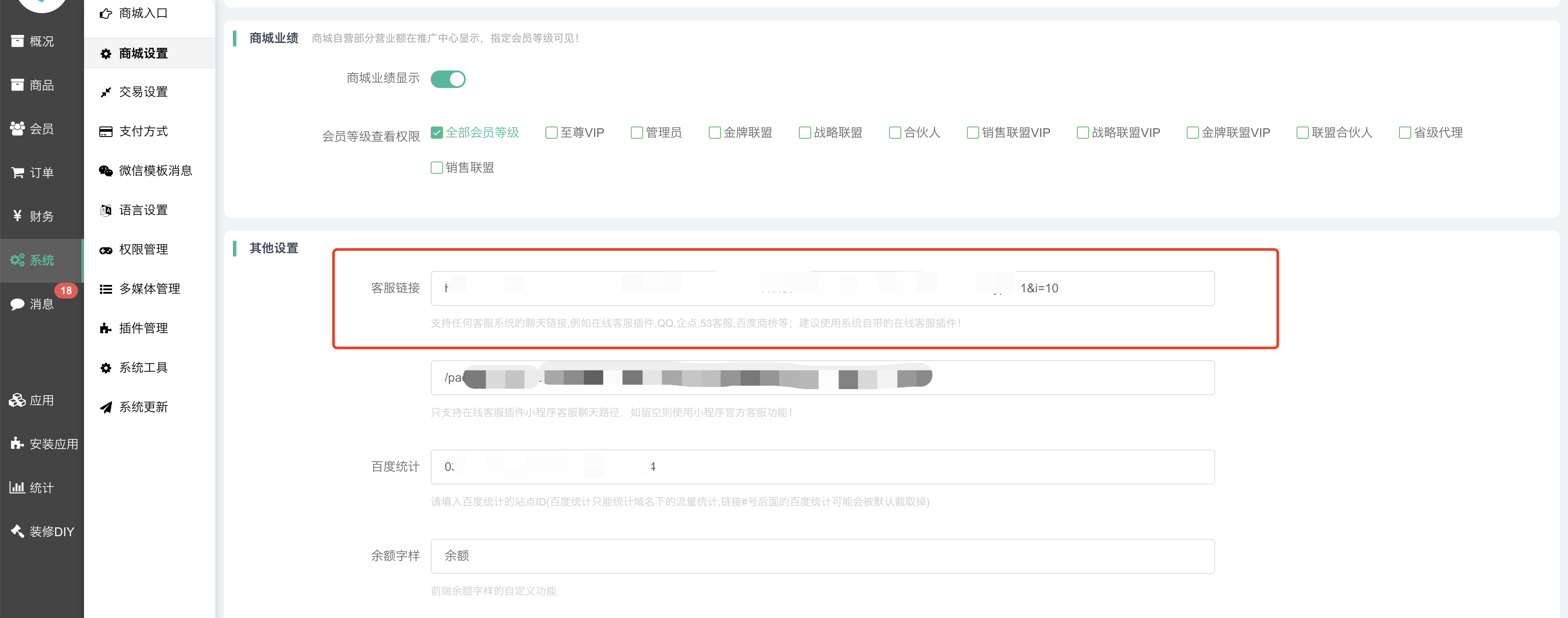 4、将这个链接填写到商城系统–系统–商城设置–客服链接中即可。