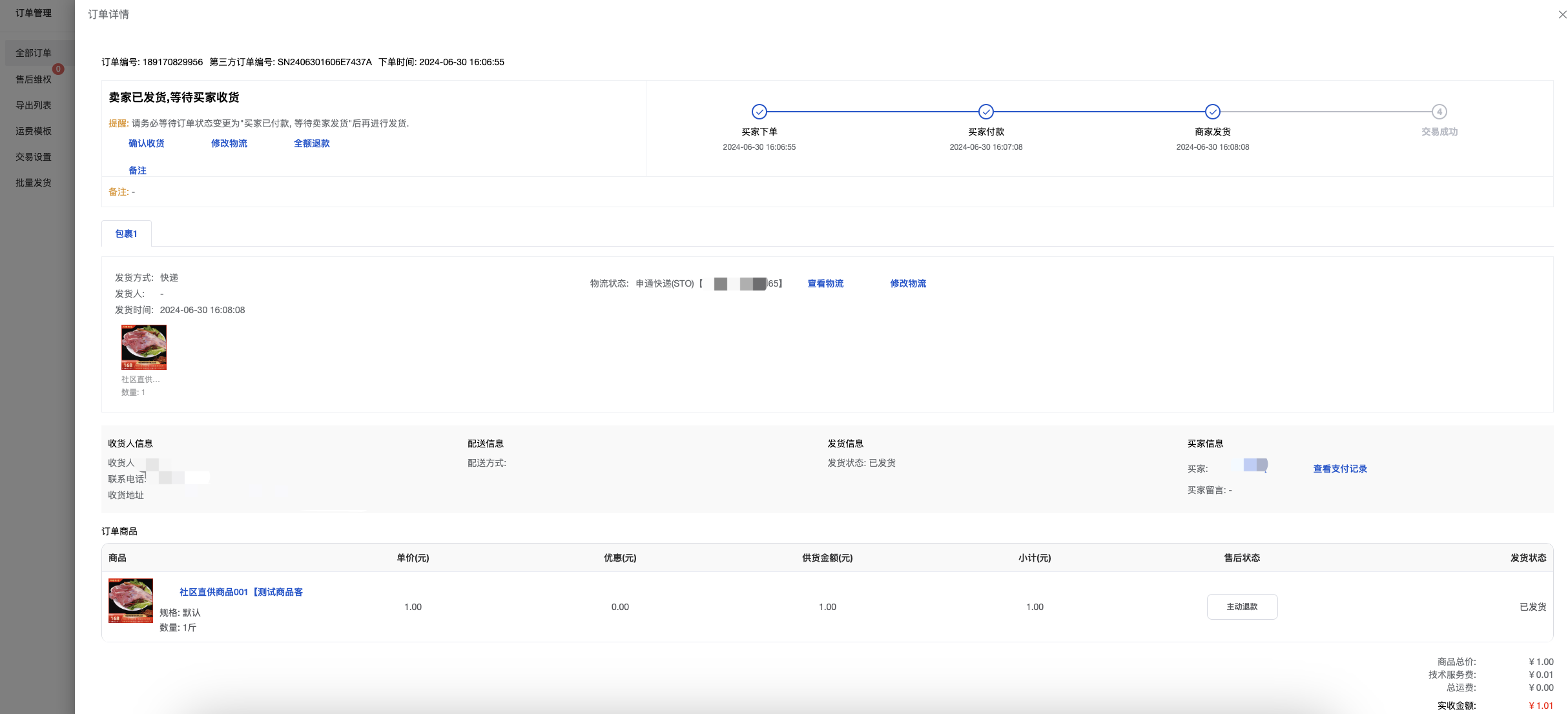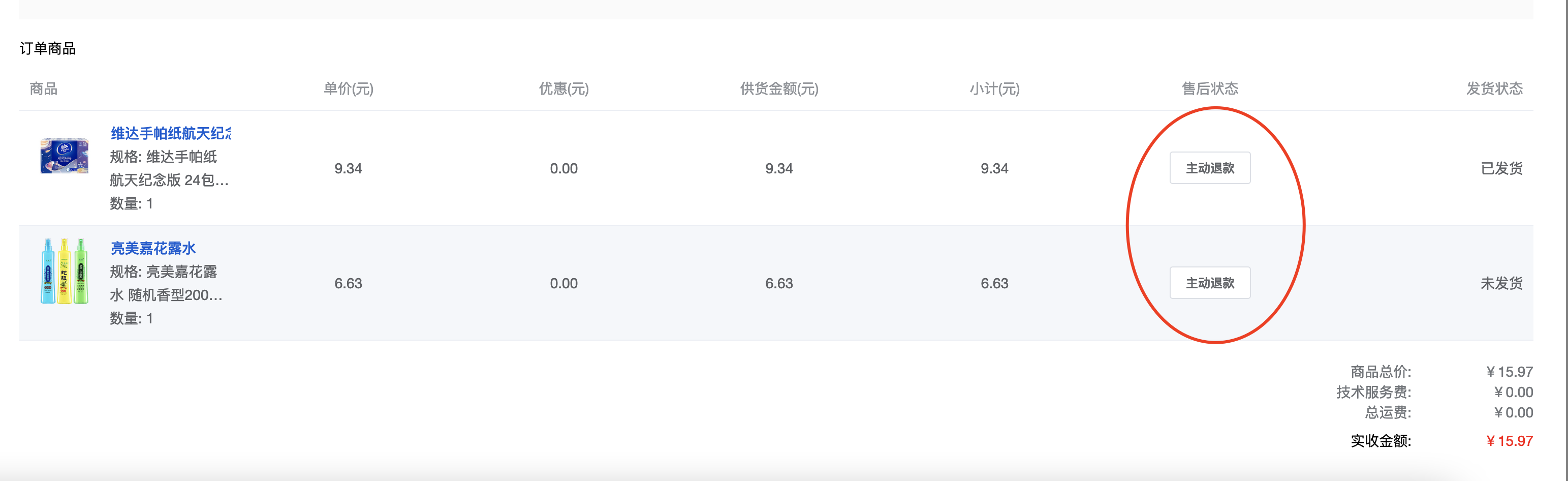 - 订单金额汇总:商品总价、技术服务费(会员/采购端技术服务费)、运费、订单总额;