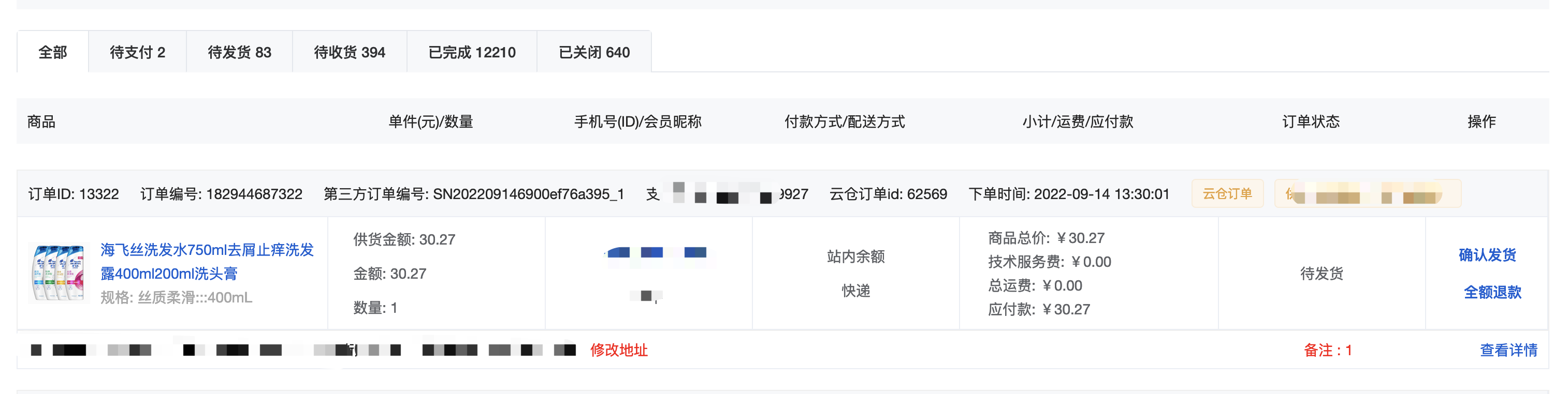 确认付款:如果是未支付订单,支持手动确认付款,注意手动确认付款不会扣除会员余额,如果客户线下充值余额,运营人员后台给会员充值余额后,需要支付未付款订单的,请让客户在会员中心自行完成支付。