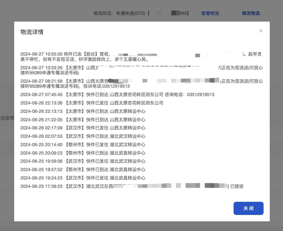 查看物流可查看物流信息:需配置物流查询接口(路径:中台系统–附件配置–物流信息查询配置,需对接API物流查询,如需配置物流信息,可联系平台客服。),每次查询会扣费。如下图所示。