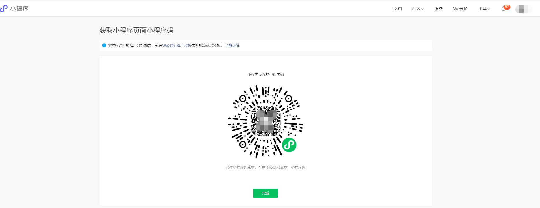 在后台,我们无法提供所有页面的小程序二维码,您可以使用微信官方的工具来进行指定页面的小程序二维码生成。