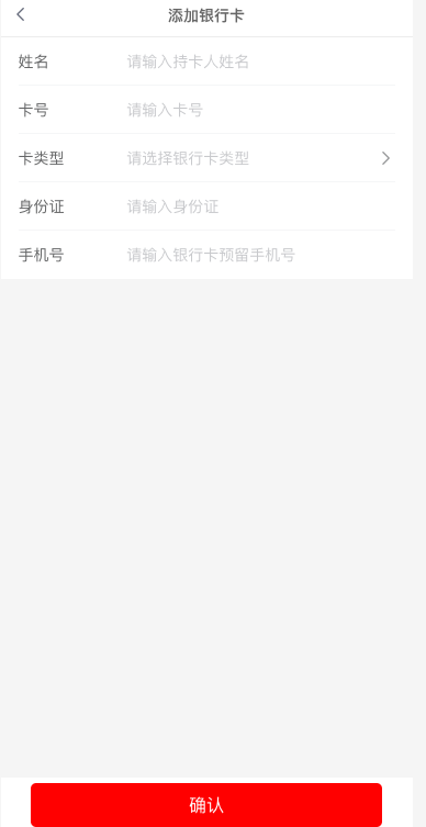 4, 添加银行卡:添加的银行卡信息,银行卡所属人需要和实名认证信息是同一人