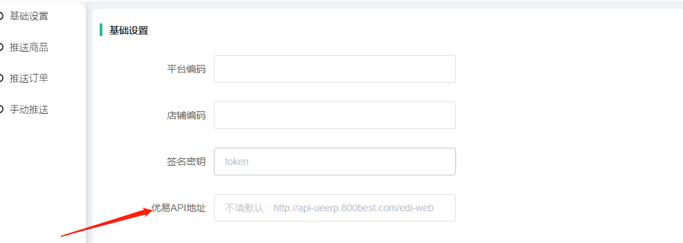技术有处理在插件基础设置添加了一个手动设置的栏,如果不确定使用的是哪个api地址可以和优易客服核实一下,填写对应的在后台优易API地址处即可,之后再留意看下商品是否有推送成功同步显示在优易后台
