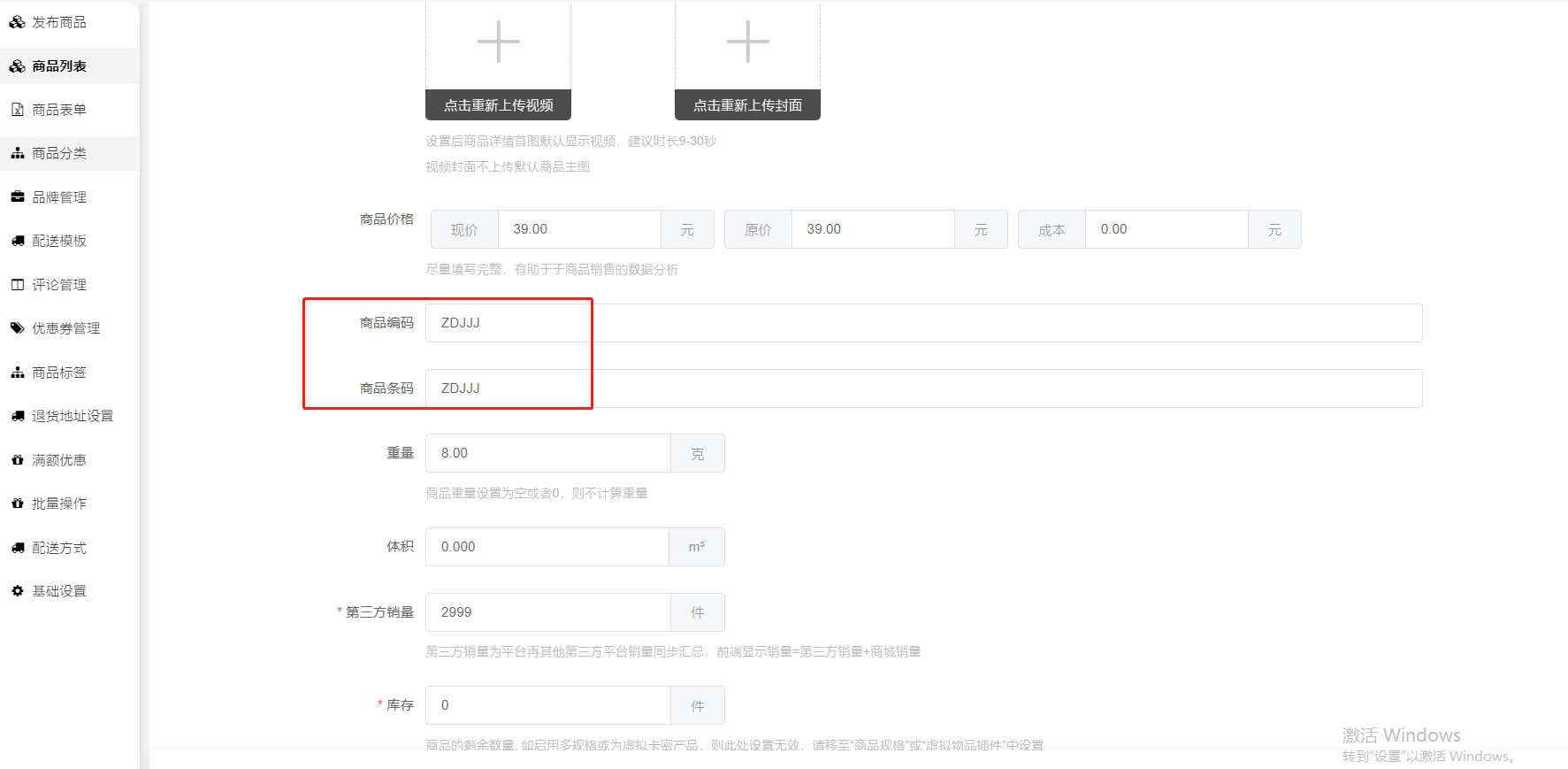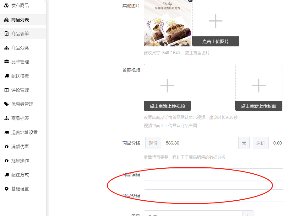 回复:检查一下商品编辑–基本信息、或者是否是多规格商品,规格里面的商品编码、商品条码是否都有填写完整