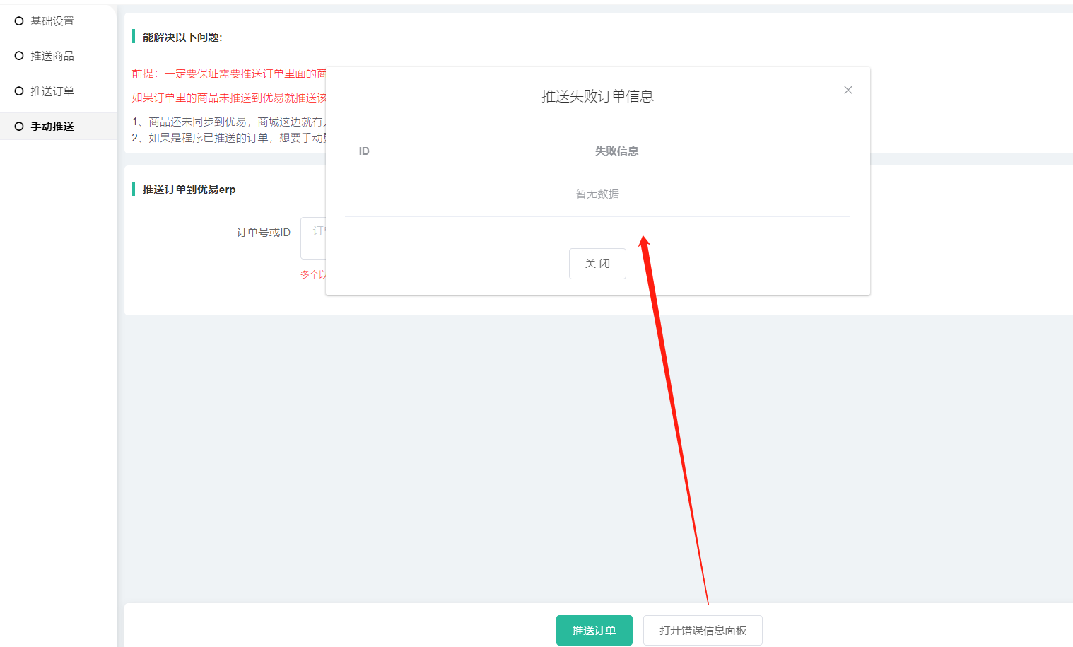 3、打开错误信息面板——可查看到推送失败订单信息
