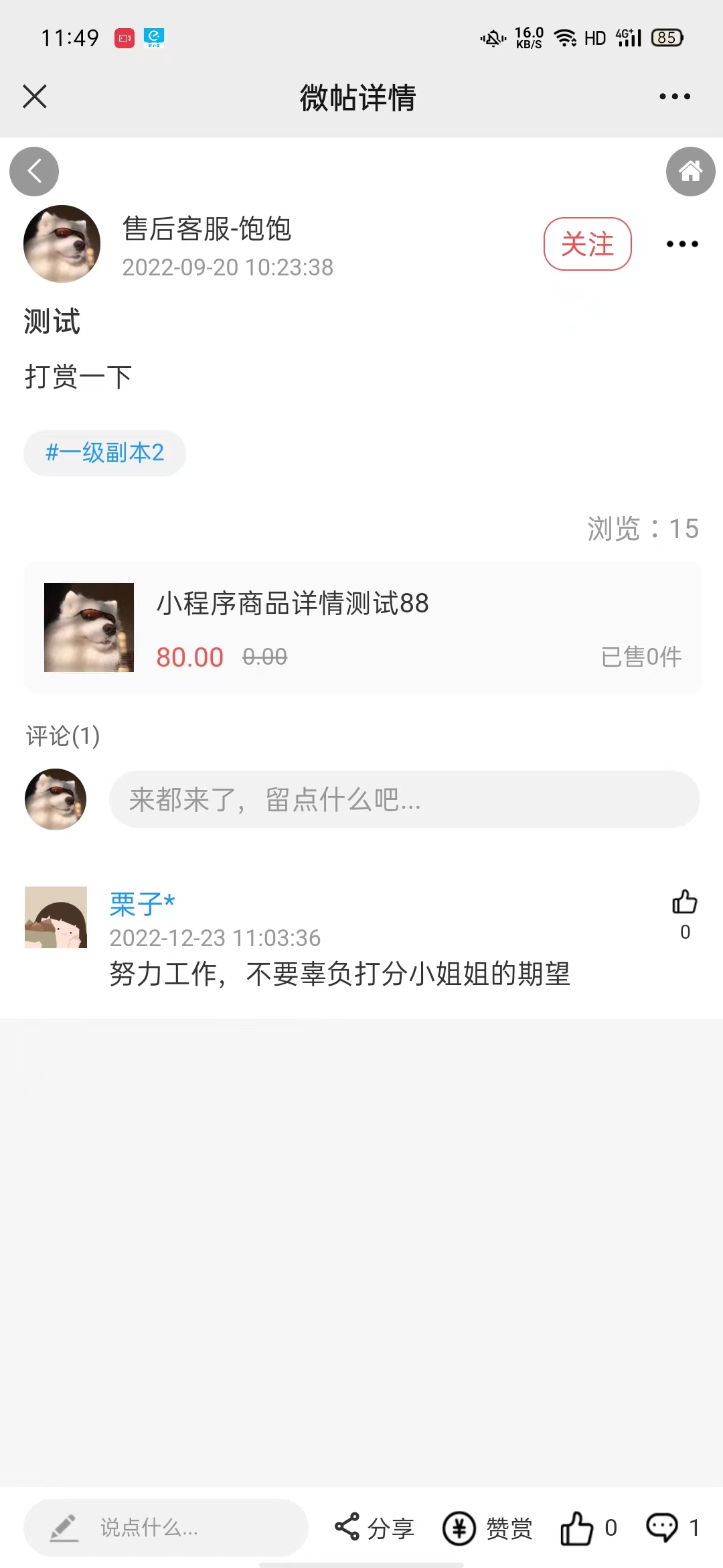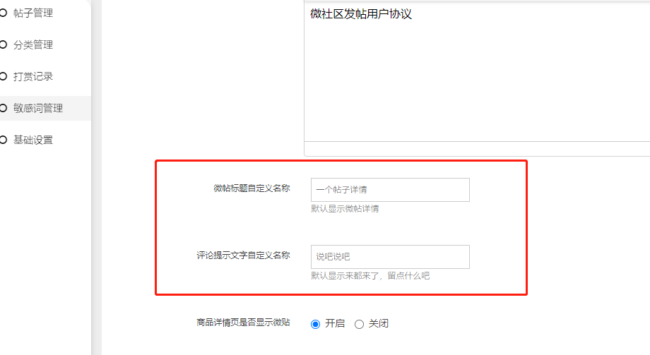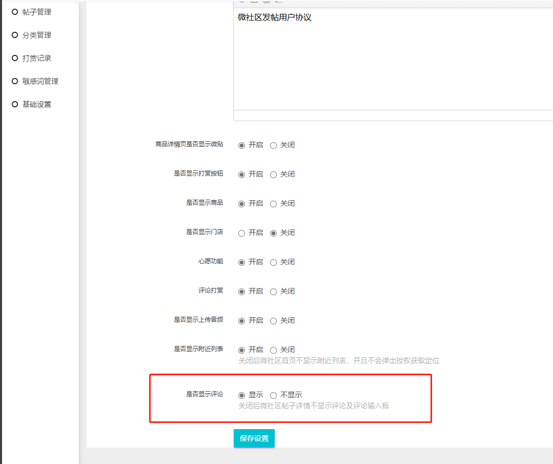 基础设置 — 是否显示评论,关闭后微社区帖子详情不显示评论及评论输入框