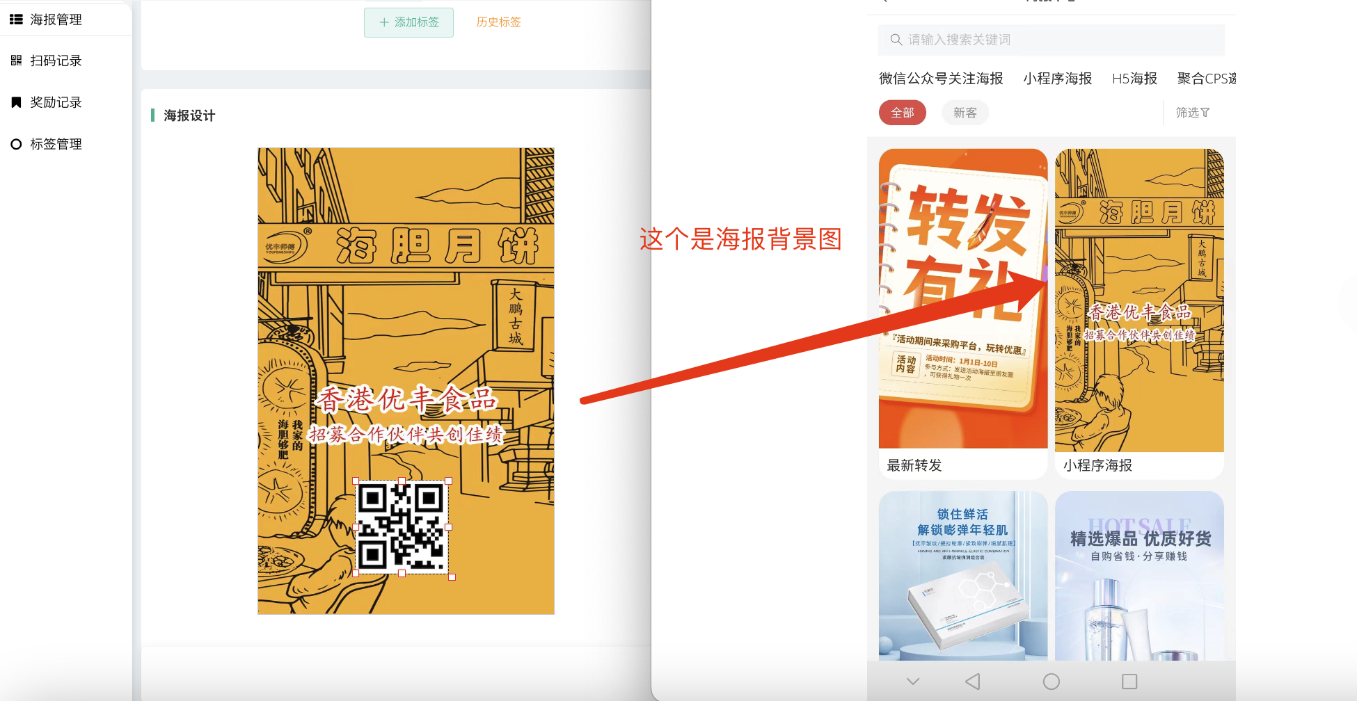 用户在前端会员中心–海报中心则可以查看到对应的海报。