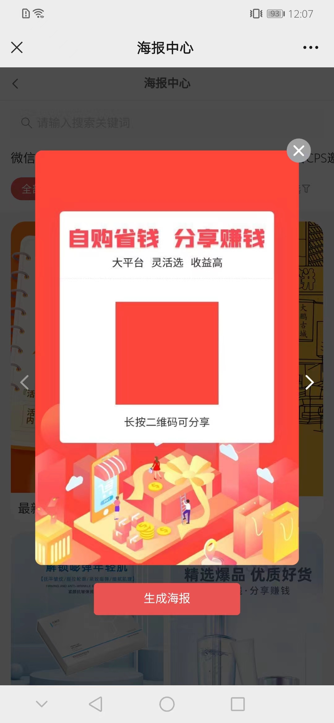点击可以生成海报,按您海报放置的海报元素显示。