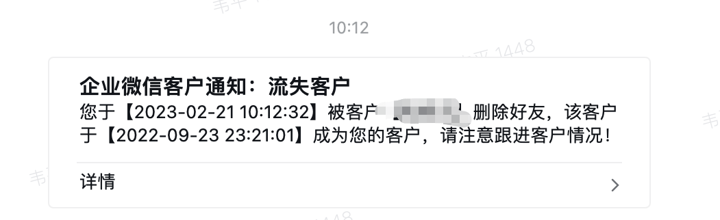 4、增加客户流失通知,直接和项目管理使用设置中的企业微信应用进行通知,通知格式如下: