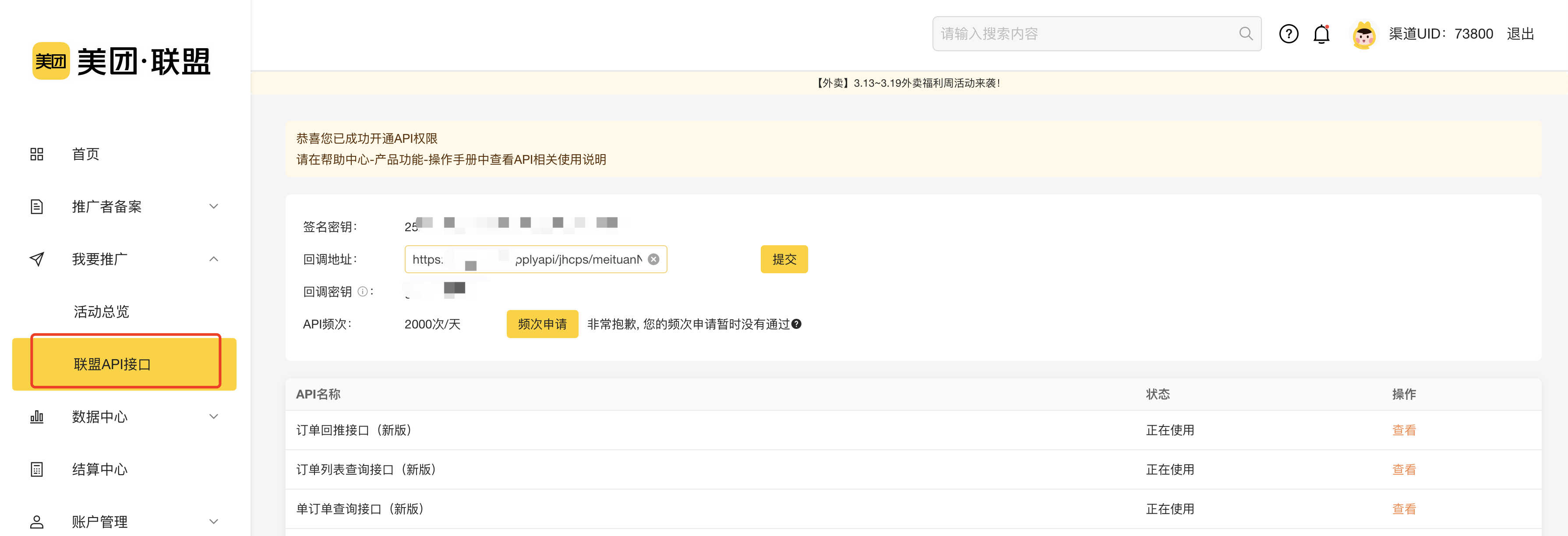 注册签约,获取权限,使用前请自行了解美团联盟推广、结算规则!!!
