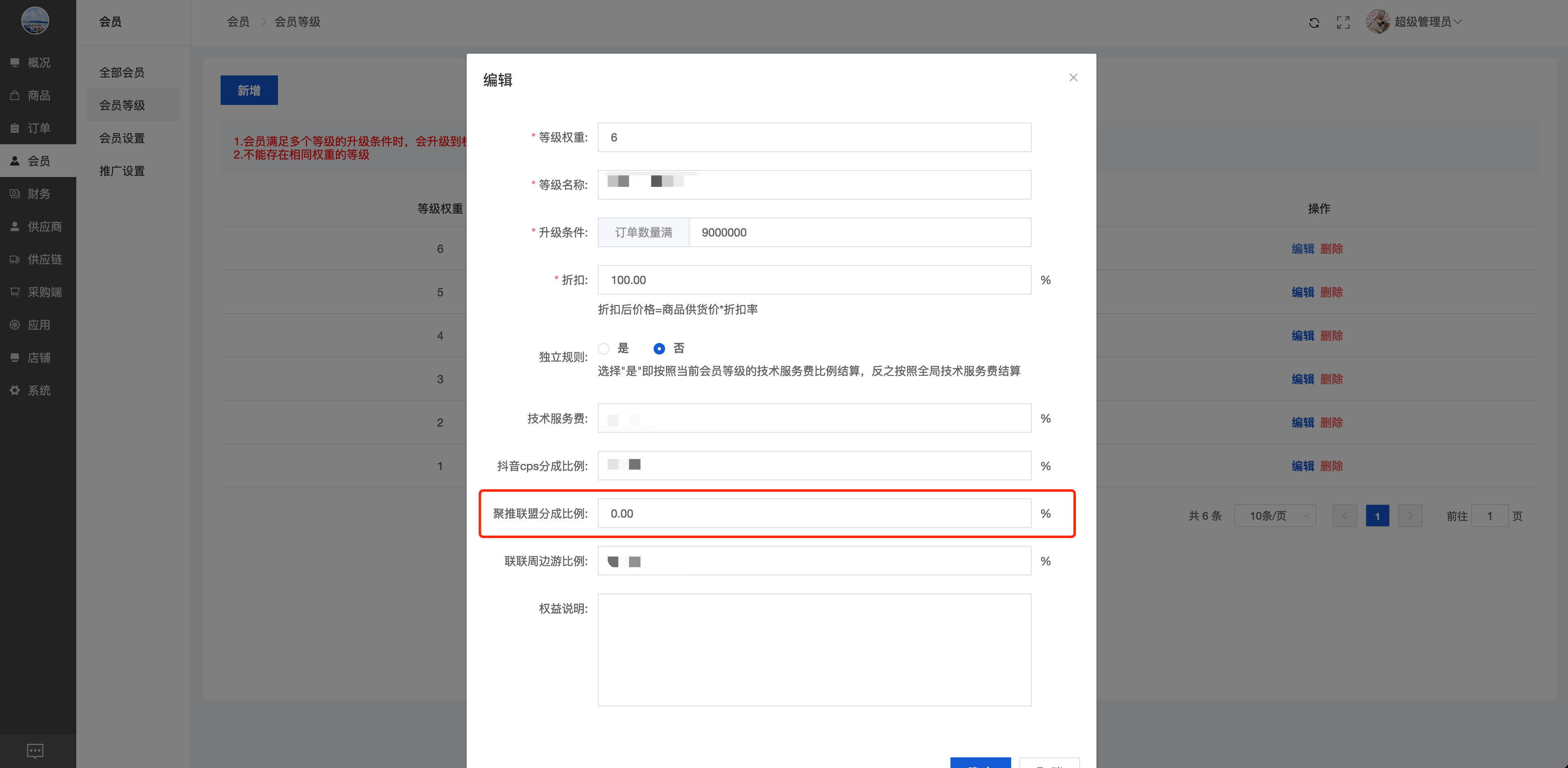 设置后,采购端获得的佣金分成=第三方联盟佣金金额*分成比例;