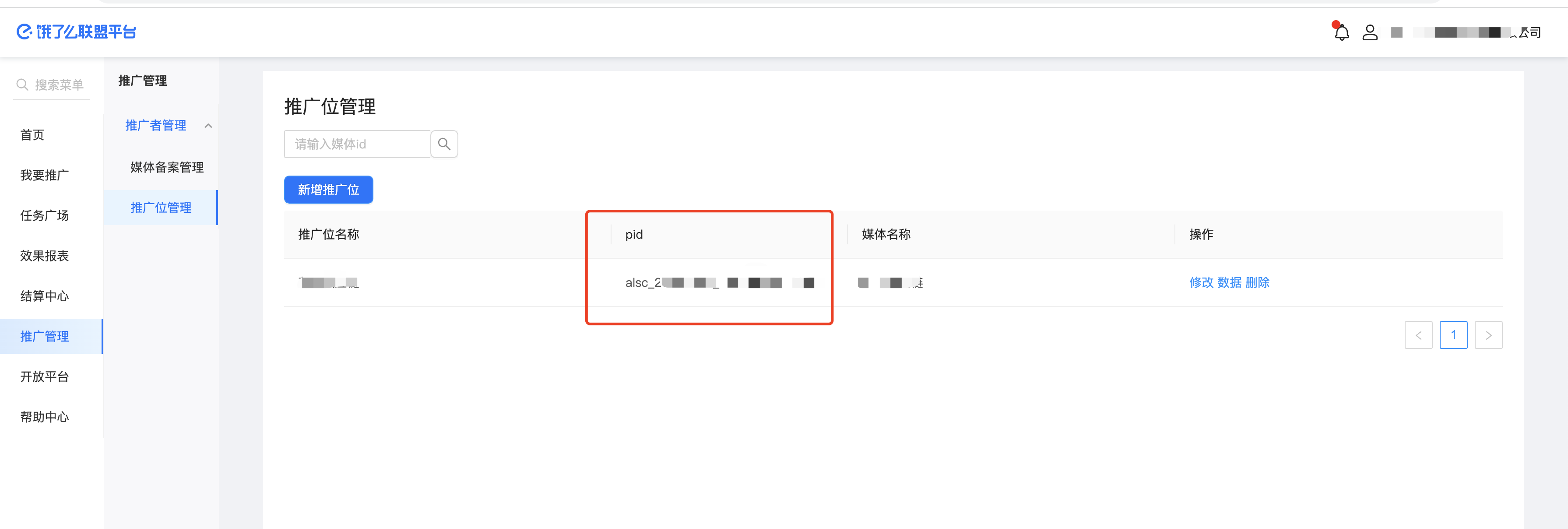饿了么PromotionID:饿了么联盟平台–推广管理–推广位管理中的 pid值。