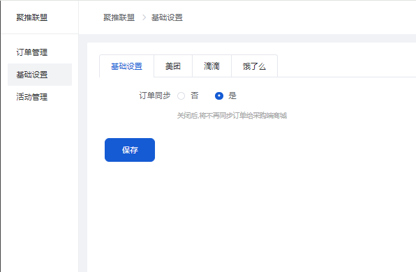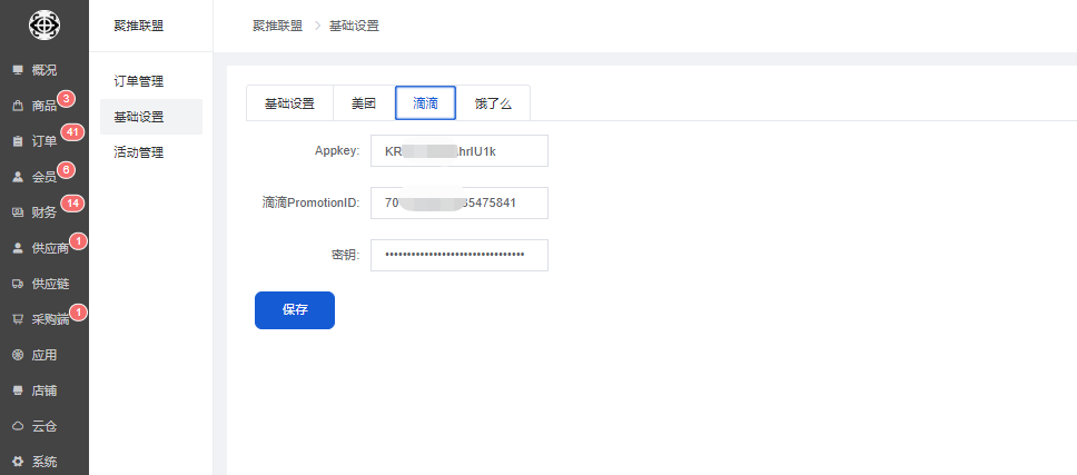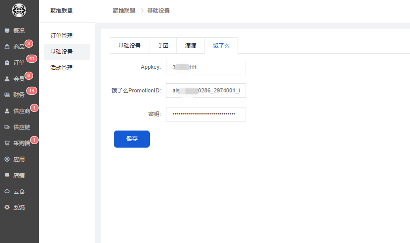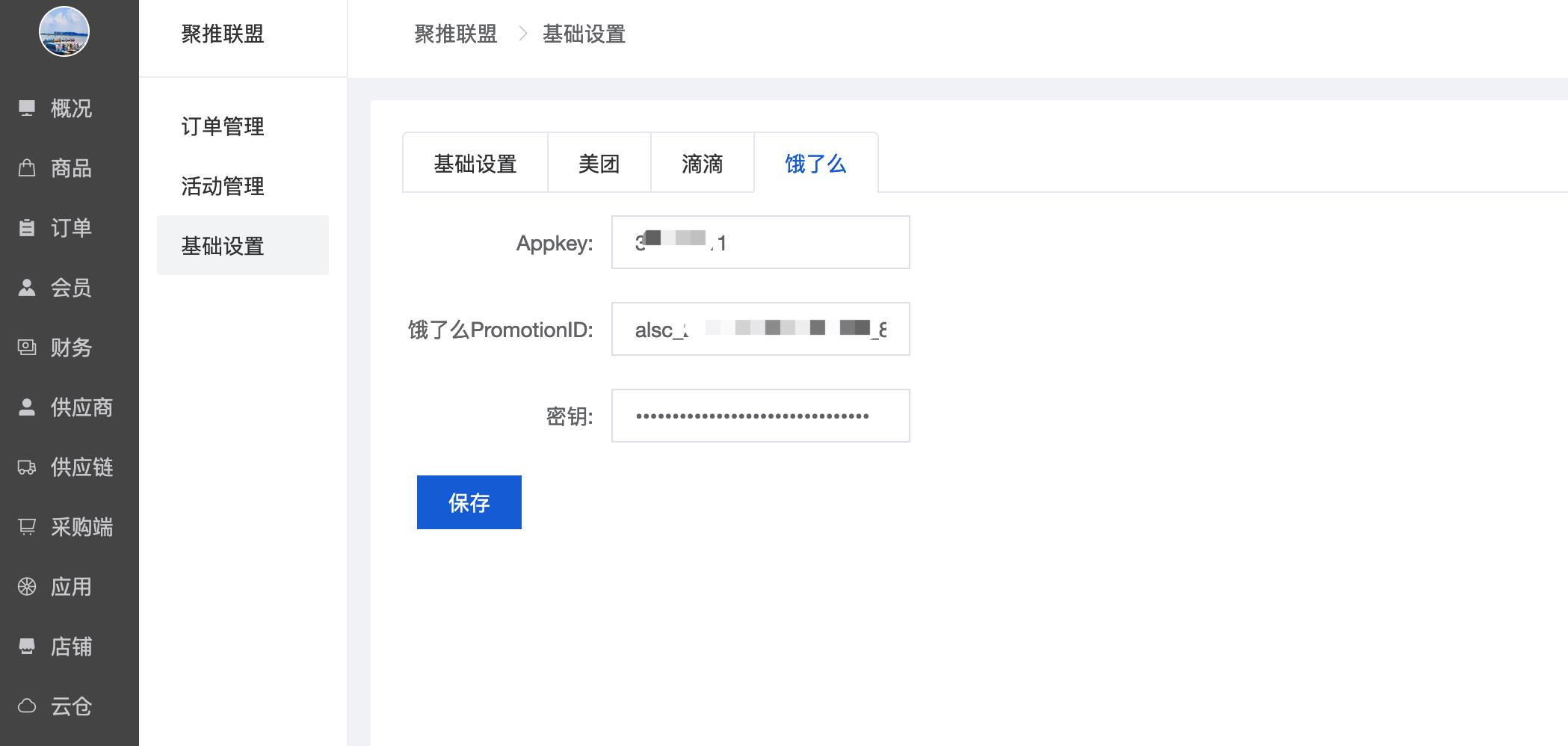 (3)供应链中台–聚推联盟–基础设置–饿了么配置