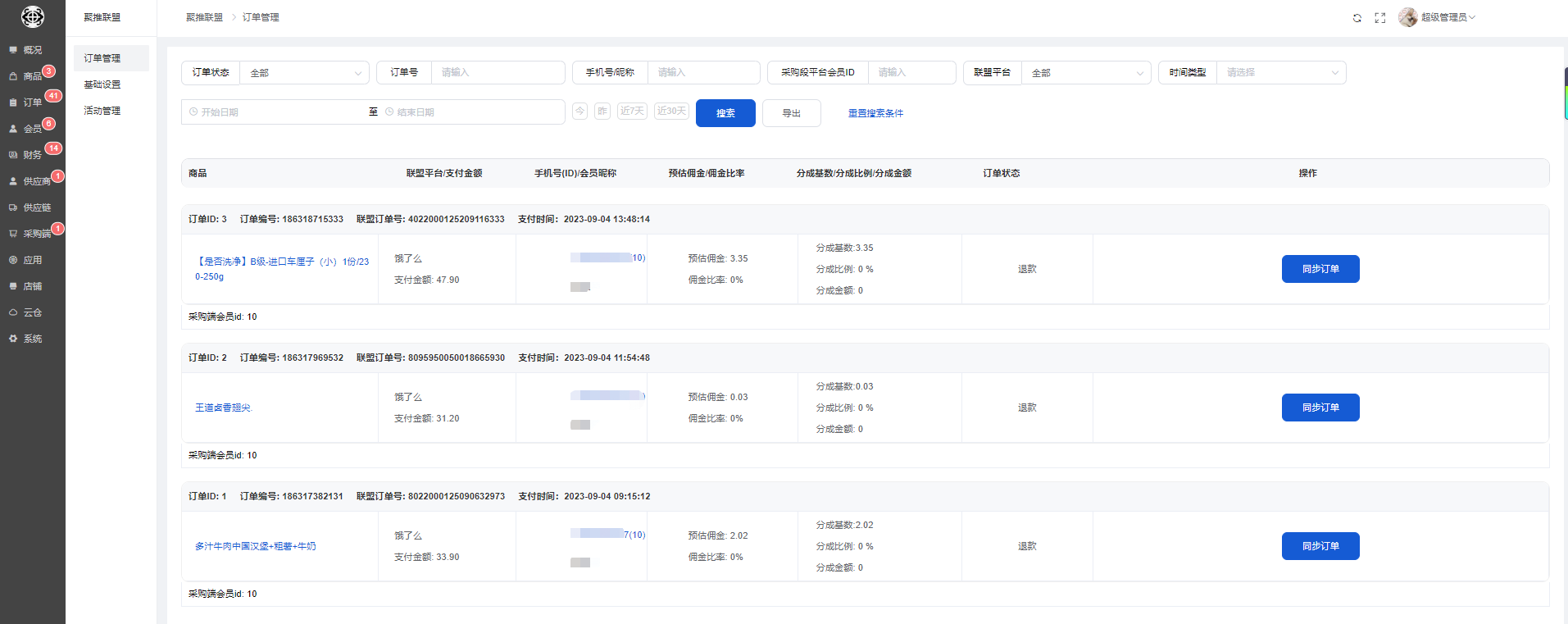 采购端商城同步订单后,将以佣金分成金额作为商城订单金额,创建后可以进行奖励、分润。