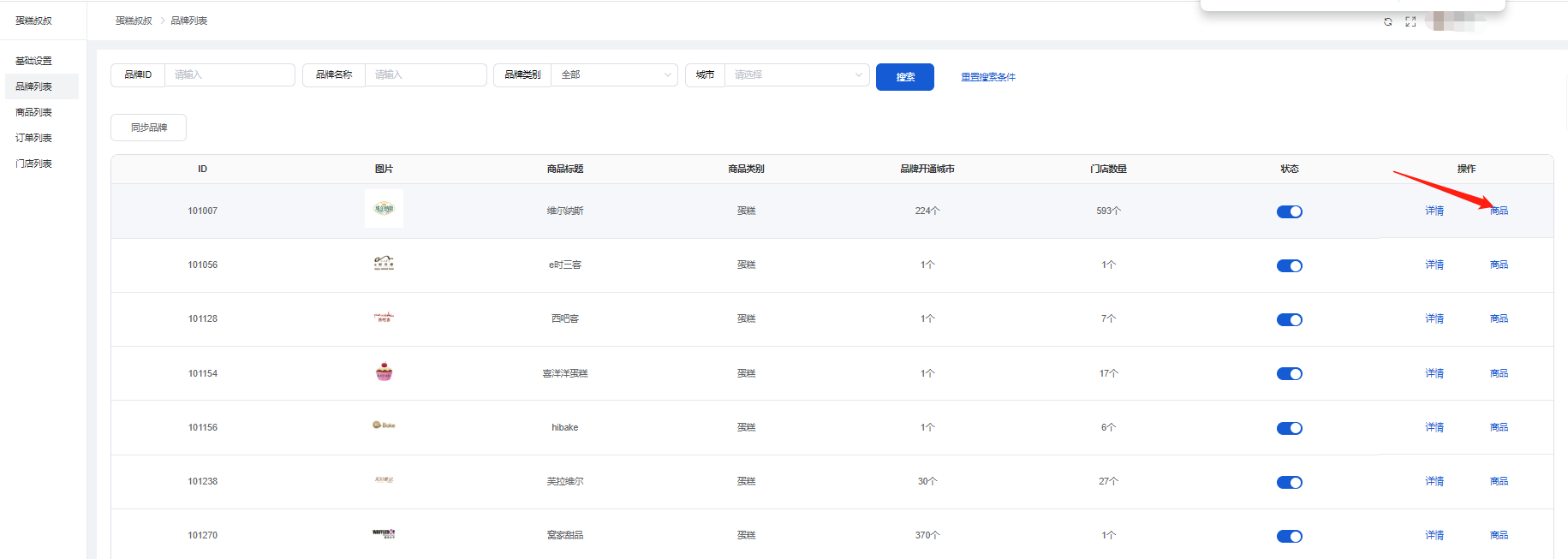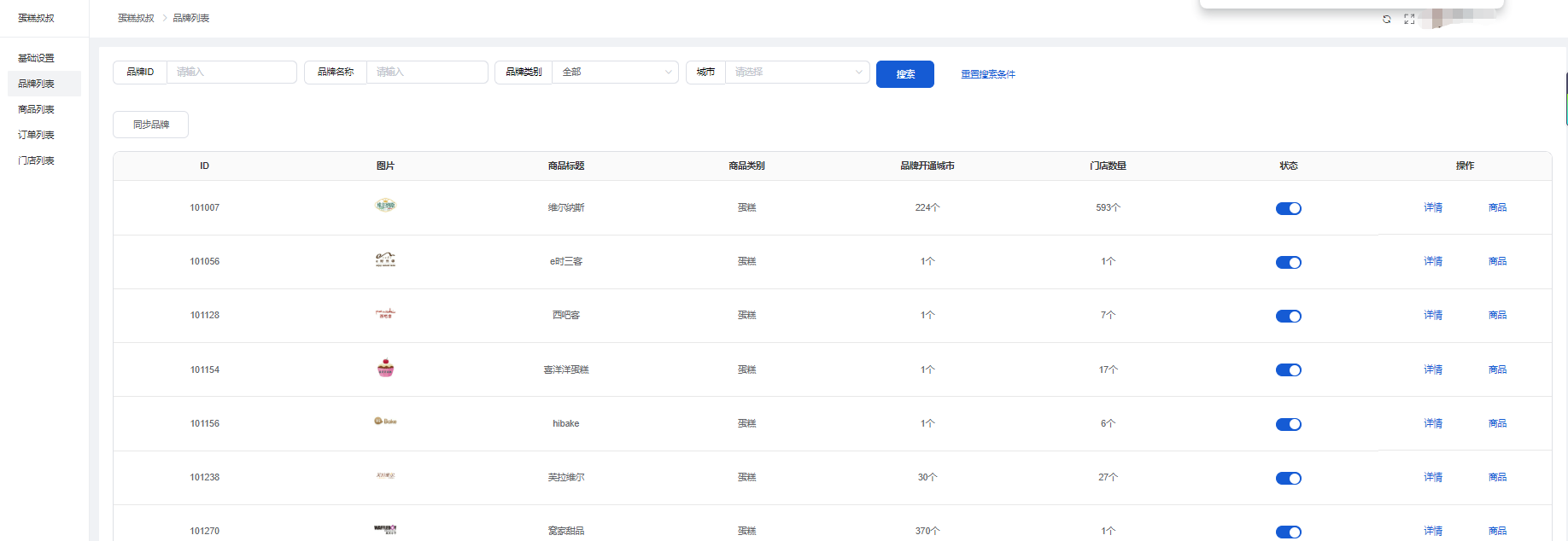 支持输入品牌ID、品牌名称、品牌类别、城市进行搜索